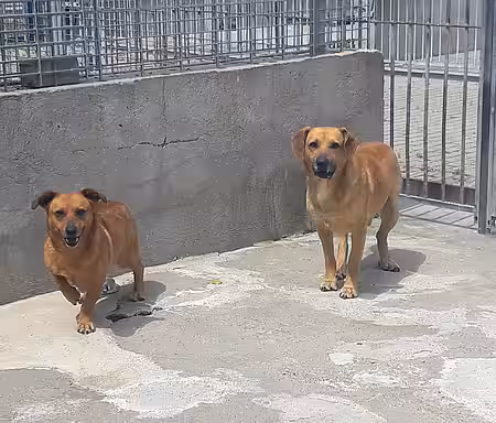 Simon (Mischling, 10Jahre) & Tina (Mischling, 5 Jahre) wohnen bei uns ebenfalls zusammen. Die Beiden waren in Herzberg ständigem Stress ausgeliefert. Ihr Gehege dort begann direkt am Tor und zog sich rundum, vorbei an anderen Hundezwingern. Auch hier grummeln und schimpfen sie direkt los, sobald sich irgendwo eine Tür öffnet oder jemand die Hundehalle betritt. Die kleine Tina möchte noch nicht gestreichelt werden, frisst jedoch gerne Leckerchen aus der Hand und lässt uns in Ruhe ihr Gehege reinigen und beobachtet uns dabei. Simon hingegen ist schon fast ein wenig aufdringlich. Wischen geht bei ihm nur mit einer ordentlichen Portion Leckerchen, für die er dann auch brav ‚Sitz‘ macht. Sobald er aufgefuttert hat, hängt er einem jedoch wieder am Bein und möchte gekrault werden. Natürlich bekommt er auch seine Streicheleinheiten, jedoch ist Simon dabei mit Vorsicht zu genießen. Mehrfach hat er sich schon mitten beim Schmusen einfach umgedreht und nach den Pflegern geschnappt. Ob es ihm dann einfach zu viel wurde oder er an diversen Stellen nicht berührt werden möchte, gilt es noch herauszufinden.