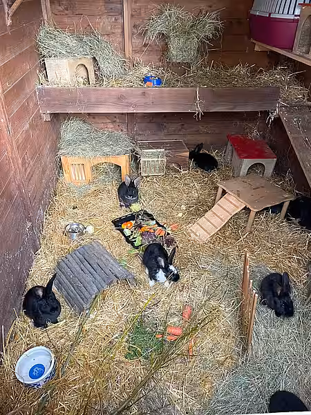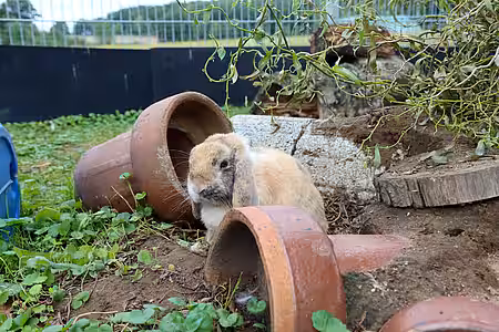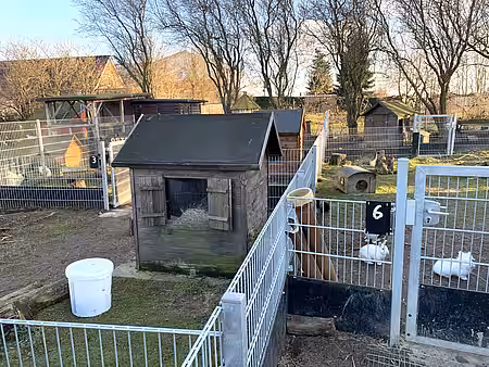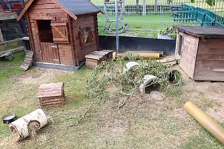 Kleintiere wie Kaninchen oder Meerschweinchen gehören nicht in einen Käfig und wir bzw. der Lottihof vermitteln auch nicht in solche Haltungsformen, da wir sie als nicht tiergerecht erachten. Die Kollegen vom aktion tier Lottihof machen vor, wie artgerechte Kaninchenhaltung geht: Große Gehege, am besten mit Zugang nach drinnen und draußen, Möglichkeiten zum Buddeln und Gesellschaft. Kaninchen sind bewegungsfreudig und brauchen viel Platz, mindestens 2 Quadratmeter pro Tier, sonst kann ihre Muskulatur verkümmern.