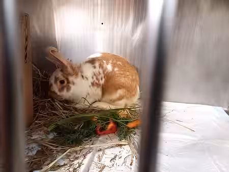 In Herrnburg wurden 6 Kaninchen in einem Karton vor einer Bushaltestelle zurückgelassen. Finder brachten die Tiere zu uns. Es handelt sich um drei Jungtiere und drei erwachsene Tiere, welche dem ersten Eindruck nach in einem gesunden Zustand sind. Insgesamt würden wir den Pflegezustand als gut bezeichnen. Zudem sind die Tiere zahm.