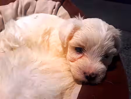 Des Weiteren fehlt bei beiden Tieren die vorgeschriebene Tollwutimpfung, ohne die kein Hund aus dem EU-Ausland nach Deutschland einreisen kann. Daher müssen die Malteser nun erst einmal für die nächsten 10 Wochen in Tollwutquarantäne. Welpen können grundsätzlich erst ab der 12. Lebenswoche gegen diese gefährliche Virusinfektion geimpft werden. Danach muss man 3 Wochen warten, bis sich der Impfschutz ausgebildet hat. Somit dürfen Junghunde erst mit frühestens 15 Wochen nach Deutschland eingeführt werden. Unsere Pfleglinge, die außerdem unter schwerem Parasitenbefall mit Giardien und Spulwürmern leiden, können also nicht in absehbarere Zeit vermittelt werden.