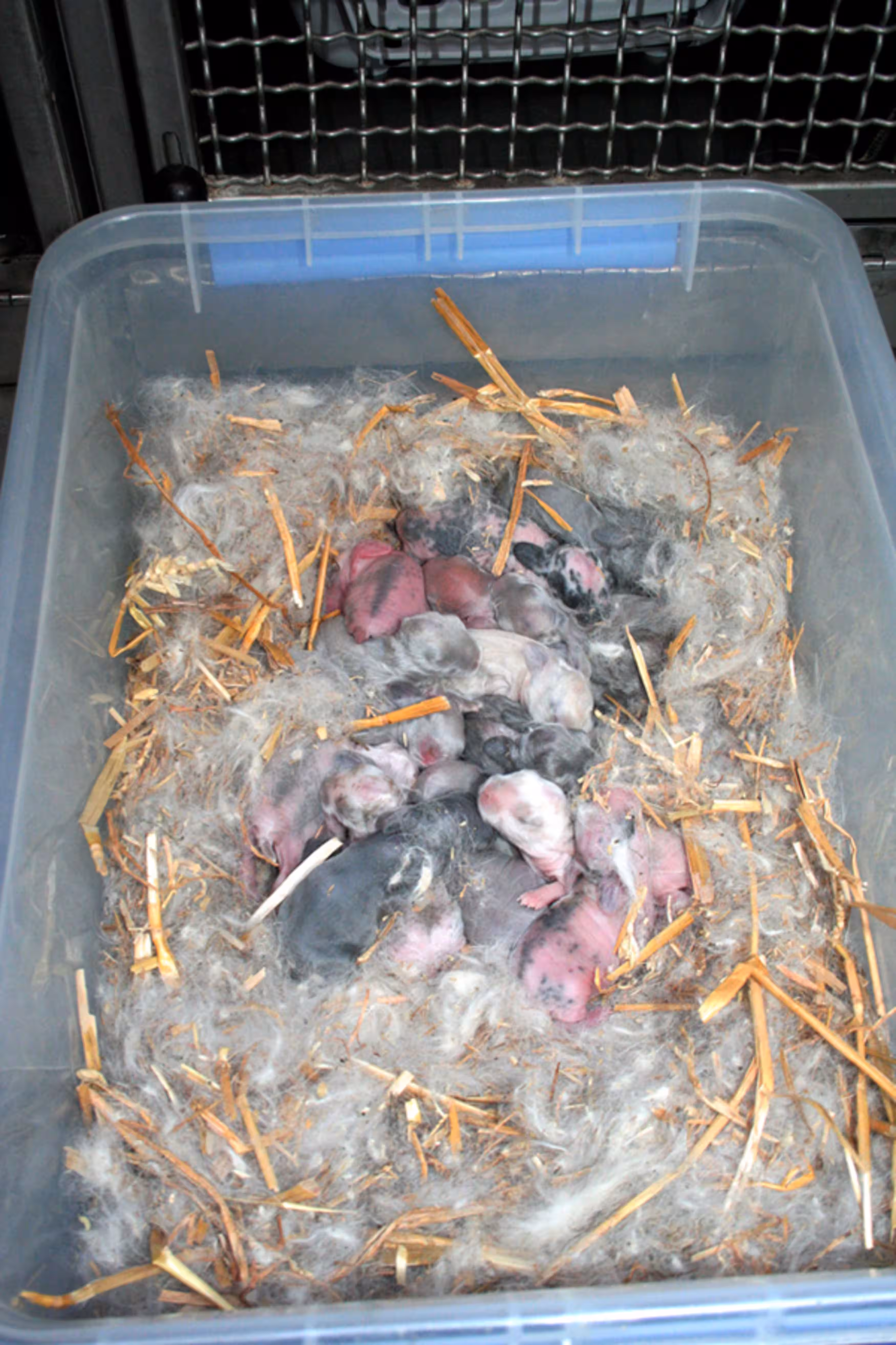 Vor allem hinsichtlich der ständig steigenden Temperaturen musste den Balkon-Kaninchen schnell geholfen werden. Wir nahmen Kontakt mit dem zuständigen Veterinäramt auf. Dort war Kaninchen-Frank kein Unbekannter. Dass sich der Tierhalter offensichtlich nicht an die bereits erteilten Auflagen hielt, veranlasste den Amtstierarzt zu einer schnellen und konsequenten Aktion: Noch am gleichen Tag wurde der gesamte Kaninchenbestand beschlagnahmt und durch den amtlichen Tierfang in die Berliner Tiersammelstelle gebracht. Frank S. war zum Glück einsichtig und kooperativ, zeigte dem Amtstierarzt auch die in einer Kammer sowie in der Schublade im Sofa versteckten Kaninchenbabys, sodass tatsächlich alle Tiere problemlos abtransportiert werden konnten. „Kaninchen-Frank“ erhielt ein Tierhalteverbot für fünf Jahre mit Androhung eines Bußgeldes von 25.000 Euro bei Zuwiderhandlung. Das hat gewirkt.