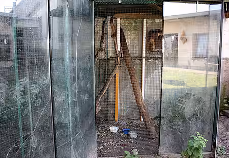 Die Eichhörnchen waren in überwiegend kleinen, aneinandergereihten Gehegen im Innenhof eines ehemaligen Bauernhauses untergebracht, in dem der Halter mit seiner Frau lebte. Als er im September dieses Jahres überraschend verstarb, stand die Witwe plötzlich allein mit den vielen Tieren da. Die Rentnerin hatte sich bisher nie an der Versorgung und Pflege der Eichhörnchen beteiligt und so riefen die angereisten erwachsenen Kinder bei unserer Eichhörnchenexpertin Tanja Lenn an. Die Tiere müssten umgehend weg, niemand wollte nach dem Tod des Besitzers die Verantwortung übernehmen. Wie immer bei derart ausufernden Tierhaltungen, die noch dazu von einer einzigen Person betrieben werden, kam es auch hier von heute auf morgen zu enormen Problemen.