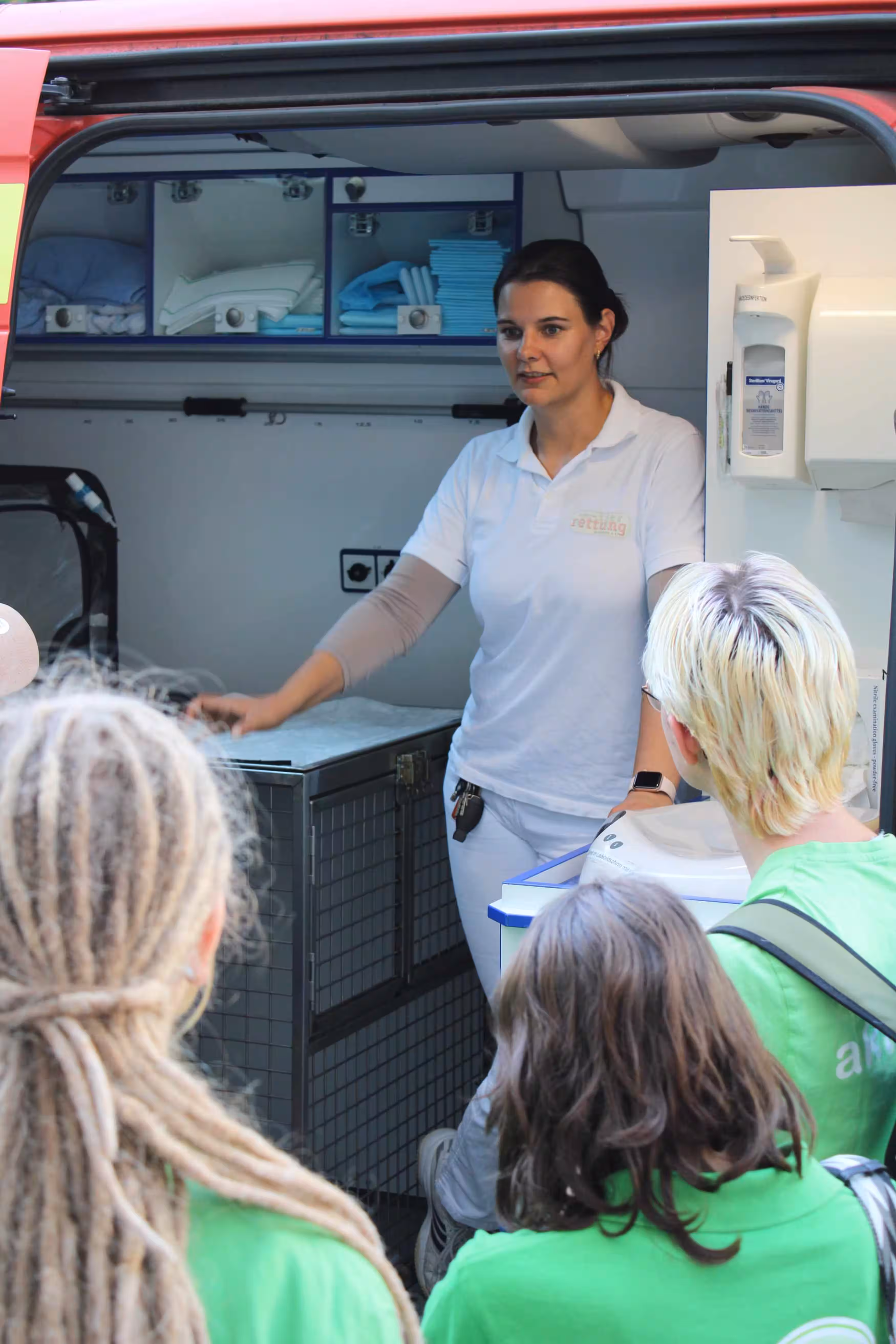 Besonderes Interesse der Besucher erlangten die Berichte der Tierärztin aus ihrer Praxis, die viele anrührende tierische, aber auch menschliche Schicksale zum Inhalt hatten. Eine besondere Herausforderung stellen die stetig wachsenden Notrufe bei Wildtieren dar, die selbst die Tierrettung München nicht in vollem Umfange nachkommen kann. Abschließend wurden den Besuchern eines der Einsatzfahrzeuge vorgeführt und deren Ausstattung im Einzelnen näher erläutert.