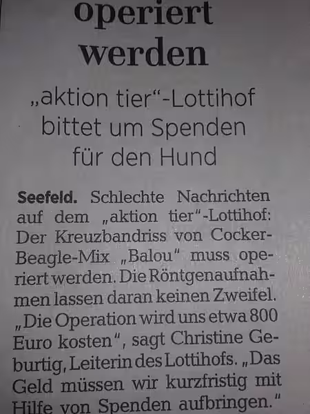 Balou wurde operiert und es geht ihm den Umständen entsprechend gut.