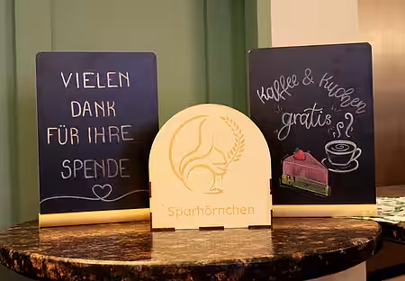 Am 21. Mai war es dann so weit. Schon von außen sieht man, dass sich beim Café Hörnchen vieles um Tiere dreht. Sie tummeln sich auf Plakaten, schmücken im Innern die Wände und dekorieren sogar die sanitären Anlagen. Hier weht aber nicht nur ein tierfreundlicher, sondern auch ein sozialer Wind – so gehen beispielsweise übrig gebliebene Backwaren nach Feierabend an Bedürftige.