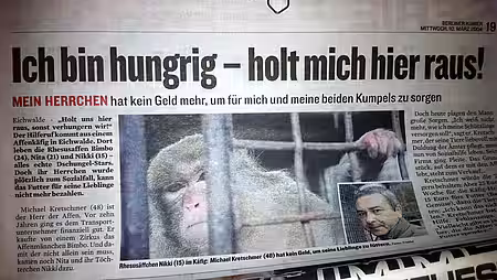 Michael Kretschmer aus Eichwalde bei Berlin ist den Tränen nahe. Nach 15 Jahren muss er sein Rhesusaffenweibchen Nicki abgeben – das Geld reicht einfach nicht mehr. Es ist Anfang Januar, bitterkalt, der Schnee liegt meterhoch. Nicki sitzt in ihrem Gehege neben dem Einfamilienhaus in Eichwalde. Im Innenraum steht ein Fernseher zur Unterhaltung des einsamen Affenweibchens. Herr Kretschmer erzählt, dass Nicki den Kinderkanal liebt und vor allem Tiersendungen sehr interessiert verfolgt. Eine Dauerlösung ist das jedoch nicht. Rhesusaffen sind Gruppentiere, die sich nur in der Gemeinschaft mit Artgenossen wohl fühlen. Herr Kretschmer weiß das, aber die Anschaffung eines Partnertieres kommt nicht in Frage. Er ist längst nicht mehr in der Lage, Nickis Haltung zu finanzieren. Allein die Beheizung des Innengeheges mit einem Ölradiator verursacht enorme Kosten. Hinzu kommen täglich große Mengen an frischem Obst und Gemüse. Im Krankheitsfall wird es richtig teuer, denn der Tierarzt muss ins Haus kommen und den Affen für die Untersuchung meistens betäuben.