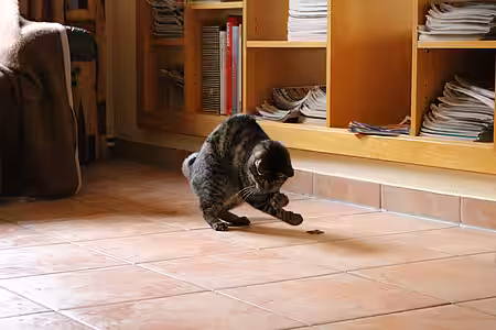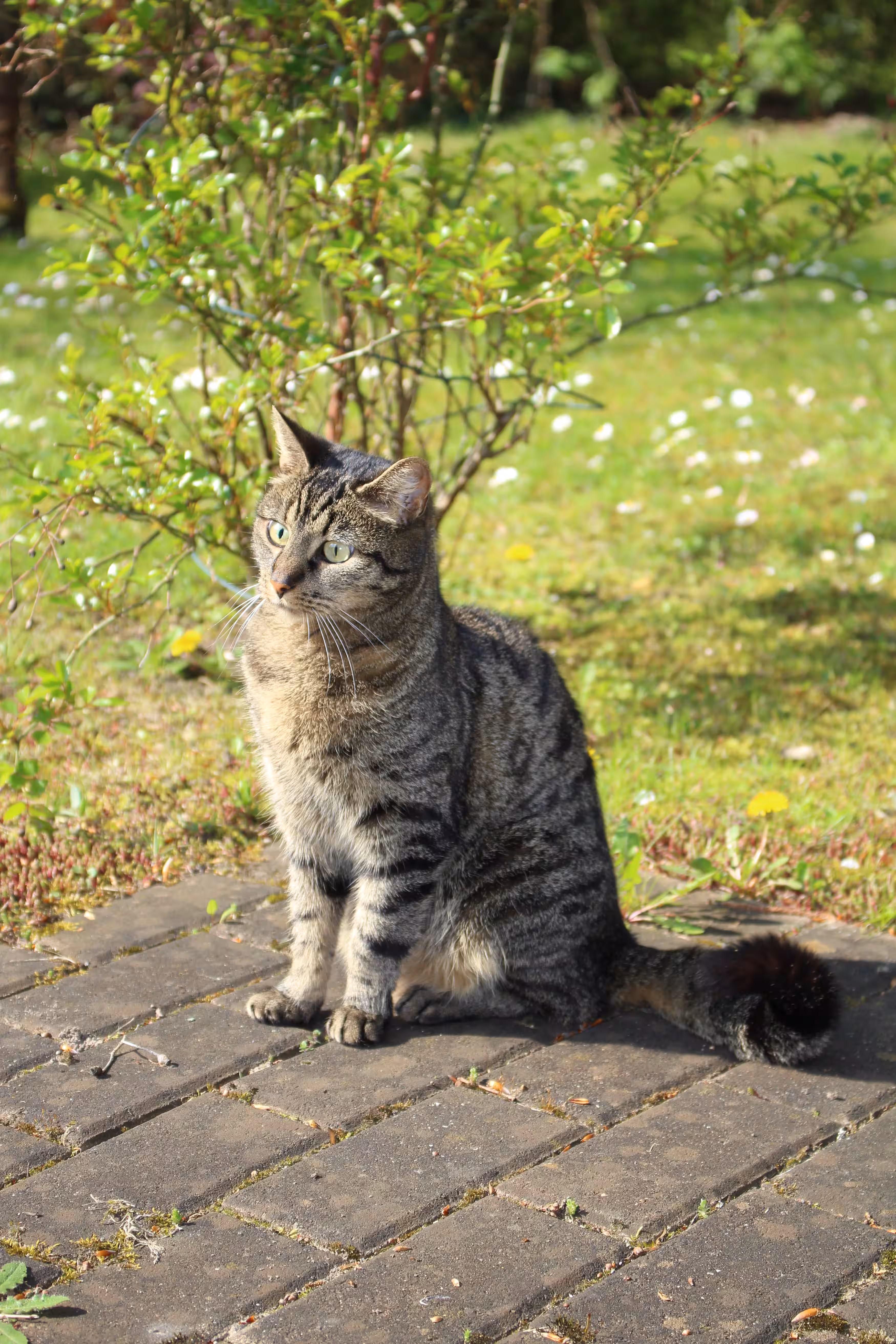Emma ist bis heute sehr schmächtig und klein und keine gute Esserin (im Gegenteil, eine kleine Mäkeltante), aber sie wirkt glücklich. Sie kommt schmusen und schläft bei mir im Bett. Sie macht einen unendlichen Radau, wenn sie eine wehrlose Socke am Wäscheständer „erlegt“ hat, und ich lobe sie natürlich immer dafür. Einmal ist ihr eine tote Libelle auf den Kopf gefallen. Ich glaube, sie ist vor stolz über ihren Jagderfolg fast geplatzt. Und ich vor Lachen.