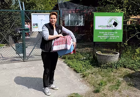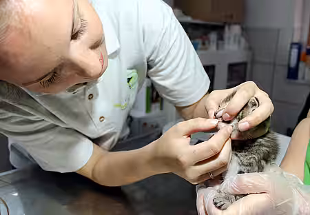Unser Plan war, mit Hilfe eines mauzenden Katzenbabys das Muttertier in eine große Falle zu locken, die von Hand ausgelöst werden kann. Leider waren die Verhältnisse vor Ort so beengt, dass die schlaue Katze „den Braten gerochen“ hat und einfach nur stoisch neben der Falle saß, anstatt hinein zu gehen. So mussten wir schließlich abbrechen, da es auch für unser „Lockkätzchen“ langsam zu kalt wurde. Die Babys kamen gleich in unser Tierheim nach Zossen, wo sie von der Tierärztin untersucht und für gesund befunden wurden. Sie lobte den guten Ernährungs- und Gesundheitszustand der Tiere, die nicht einmal Parasiten beherbergten. Nach einer prophylaktischen Wurmkur kamen die Kätzchen dann auf eine Pflegestelle, da man sich um derart junge Tiere sehr intensiv und auch nachts kümmern muss.