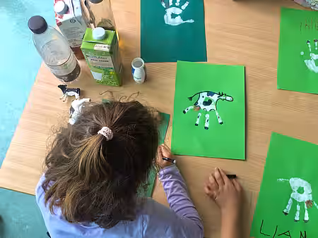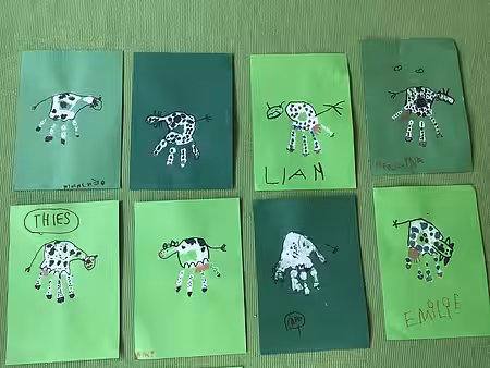 Dass Kühe nicht nur die Nummer ihrer Ohrenmarke, sondern auch lebende, fühlende Individuen sind, haben die Kinder der Kita Sonnenblume in Berlin-Lichtenrade im aktion tier-Tierschutzunterricht mit ihren Handabdrücken dargestellt. Denn so einzigartig wie der Handabdruck eines jeden Kindes ist, so einzigartig ist auch jede einzelne Kuh in der Milchindustrie.