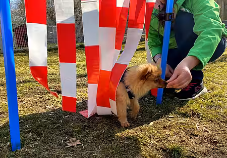 Die Sozialisierung von Welpen ist immer ein großes Thema, wenn ein kleines Fellknäuel in der Familie einzieht. In den ersten Lebensmonaten wird schließlich der Grundstein für die persönliche Entwicklung gelegt. In dieser Phase sollte der Welpe zum Beispiel mit allerhand unterschiedlichen Untergründen und Geräuschen vertraut gemacht werden, die ihm in seinem Leben begegnen können. Aber auch verschiedene Aktivitäten wie Autofahren, Treppensteigen, durch einen Tunnel laufen oder der Besuch der belebten Innenstadt, formt den Charakter. Dabei sollte man jedoch beachten, dass der Spaß an erster Stelle steht, denn so ein Welpe sollte mit neuen Eindrücken nicht erschlagen werden. Auch ein positiv aufgebautes Boxentraining und „Medical Training“ kann einem später das Leben erleichtern.