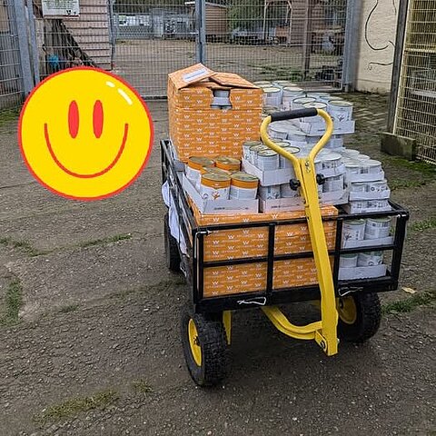 Ein Wagen voller sehr hochwertiger Spezial-Nassfutternahrung für Hund und Katze erreichte uns heute. Unter anderem Nierenfutter für unseren Kater Diggi ist dabei, Intestinal-Futter für unsere Katze Leila, Allergiefutter für unsere Hunde und, und, und! Wir können das alles sehr gut gebrauchen. Danke!