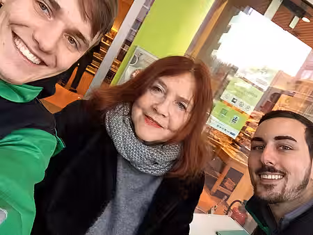 Viele interessante Persönlichkeiten durfte ich bereits vor Ort über die Missstände im Tierschutz informieren und als Unterstützer für unseren Verein begeistern. Darunter die Schauspielerin Regine Vergeen, welche als „Oma Betty“ aus der 2008 erschienenen Kinderserie „Rennschwein Rudi Rüssel“ bekannt ist. Oma Betty haben wir vor einem Bio Markt in Frankfurt kennen lernen dürfen, wo ich sie auf die Problematik mit der Gesetzgebung in der industriellen Massentierhaltung ansprach. Frau Vergeen war zunächst sehr betroffen über das Leid der armen Ferkel, die nun wirklich kein schönes Leben führen dürfen. Im Laufe des Gesprächs wirkte sie jedoch immer enthusiastischer, nachdem sie erfuhr wie unser Verein für die Rechte der Tiere kämpft und dabei keinerlei Zeit und Mühe scheut.