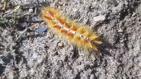 Die Raupen sind etwa 4 cm groß und, wie man im Video sehen kann, unglaublich schnell unterwegs. Ihre in alle Richtungen abstehenden Haare sehen fast wie ein Fell aus. Fühlt sich das Insekt bedroht, kugelt es sich wie ein Igel ein, so dass die Härchen nach außen ragen. Diese können, so wie bei der Raupe des Eichen-Prozessionsspinners, bei empfindlichen Menschen allergische Reaktionen wie Hautjucken und Brennen auslösen.