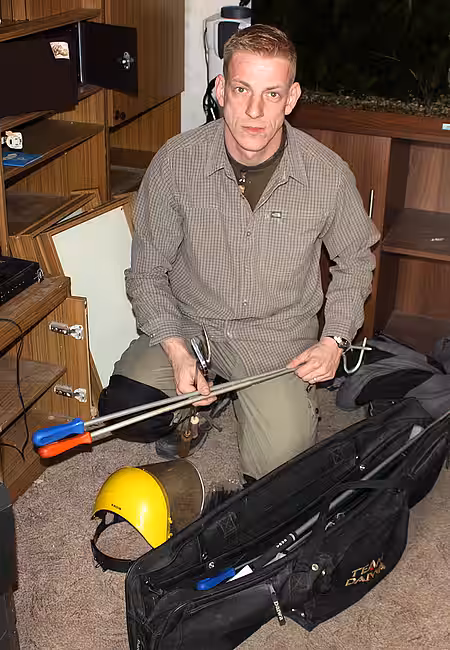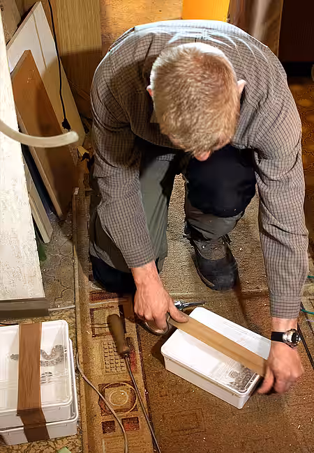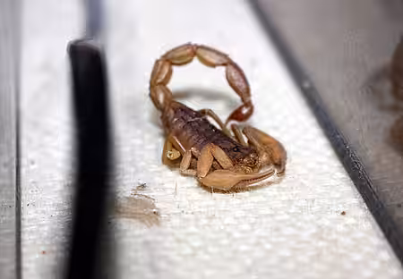 Die kleine, unordentliche Wohnung des Verstorbenen war mit einem großen Aquarium und zahlreichen Terrarien in unterschiedlichen Größen vollgestellt. Die sechs Giftschlangen lagen in ihren Glaskästen – aber für welche Tiere waren die übrigen Behältnisse? Die Angehörigen erzählten, dass auch noch insgesamt 60 Skorpione und Vogelspinnen sowie eine ebenfalls mit Giftdrüsen ausgestattete Krustenechse in der Wohnung gelebt hatten. Diese Tiere hatte die Nichte des Halters jedoch bereits vermittelt. Das Faible des Halters für Gifttiere im Kopf, inspizierten wir vorsichtig die Wohnung und schnell war klar, dass sich hier ein stilles Drama abgespielt hatte. Frank B. lebte sehr zurückgezogen und hatte auch niemanden darüber informiert, dass er im Krankenhaus ist, wo er schließlich verstarb. Daher waren die Tiere lange unversorgt geblieben. Wir fanden drei tote und vertrocknete Vogelspinnen in ihren verdreckten Terrarien. Zwei giftige Dickschwanzskorpione waren in ihrem Glaskasten verhungert und verdurstet. Auch die als Futtertiere gehaltenen Mäuse, Heuschrecken und Schaben mussten sterben, da ihnen niemand zu fressen und zu trinken gegeben hatte. Was uns jedoch am meisten beunruhigte waren drei giftige Wüstenskorpione, denen die Flucht gelungen war. Die inzwischen gestorbenen Skorpione lagen auf dem Dach eines Terrariums und in einem Zwischenraum zwischen zwei Behältern.