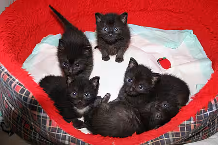 Was sehr wichtig ist: Sie müssen ab dem 1. Tag, nachdem die Babys die Flasche bekommen haben, den Bauch massieren. Sie streichen mit dem Zeige- und Mittelfinger vom Bauchnabel zum Po (nur in einer Richtung) mit leichtem Druck auf den Bauch, bis das Baby sich löst. (Wasser lassen und Kot absetzen). Das Baby wird nicht jedes Mal Kot absetzen, aber es wird jedes Mal Wasser lassen. Ab der 5. Woche können Sie auch den Futtermix in eine kleine Futterschale geben und die Babys daran setzen. In der ersten Zeit werden die Kleinen durch das Futter laufen und eine große Schweinerei machen, aber sie lernen dadurch. Zusätzlich müssen Sie ein kleines Katzenklo mit Streu aufstellen. Nehmen Sie nur grobkörniges Streu, weil die Babys davon kosten werden. Bei feiner Streu klumpt die Streu im Maul der Babys und sie könnten daran ersticken.
