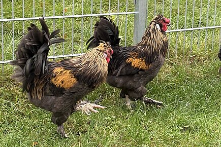 Die drei Hähne Hans, Hannes und Hades suchen ab sofort ein tolles schlachtfreies Zuhause in Freilandhaltung mit Hennen als Gesellschaft, über die sie wachen können.