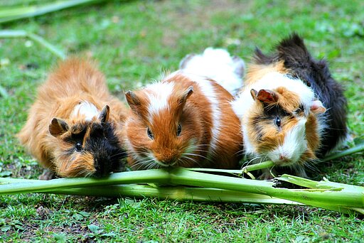 Meerschweinchen sind gesellige Tiere, die sich für Kinder ab sechs Jahren eignen, aber keine „Kuscheltiere“ sind. Bitte nie als Einzeltier halten. Mindestens zu zweit (achten Sie auf eine Kastration!). Ein ausreichender Auslauf ist wichtig.