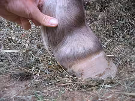Die Entzündung ist allerdings nicht infektös und kann bei jedem Pferd auftreten. Es kommt zur Lockerung der Verbindung zwischen Hornschuh und den inneren Anteilen des Hufes. Zeitgleich zur nachlassenden Verbindung mit der Hornkapsel zieht eine Sehne an den inneren Kompartimenten des Hufes. Der Knochen im Huf, das Hufbein, kippt dabei nach vorne ab. Im schlimmsten Fall bricht es in der Folge mit seiner Spitze durch die Sohle durch. Bei akuten, drastisch verlaufenden Schüben kann auch der ganze Hornschuh komplett verloren gehen.