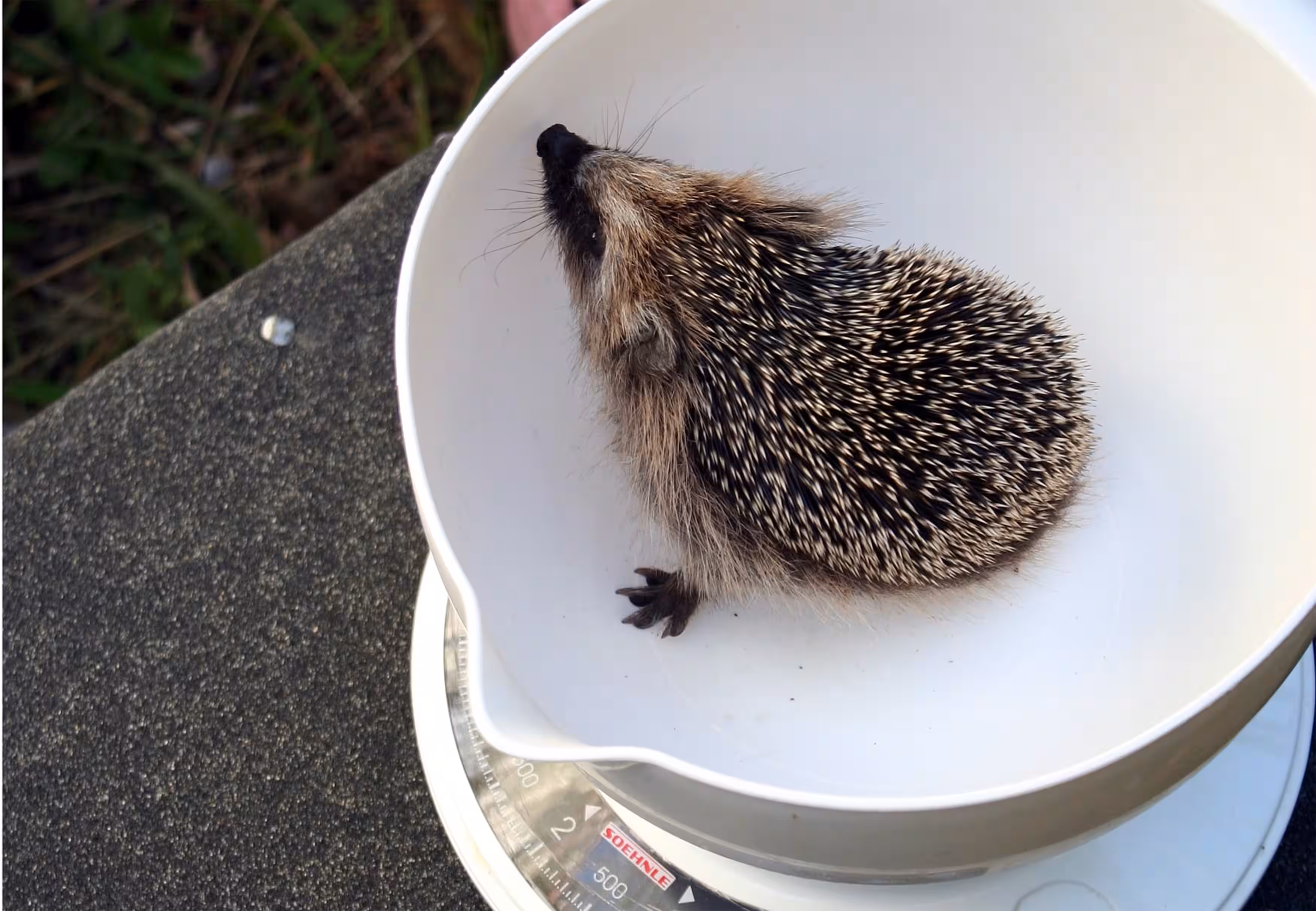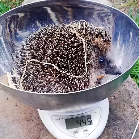 Eines Tages tauchten dann Igelbabys an der Futterstelle auf. Folglich hatte eine trächtige Igelin in dem Hof Zuflucht gesucht und unter Ästen ihre Jungen zur Welt gebracht. Es war klar, dass die Tiere hier keine Überlebenschancen haben und auch die dauerhafte Fütterung unnatürlich ist. Als ein Igeljunges schließlich in einen Kellerschacht fiel und von dem Lautsprecherbauer gerettet werden musste, war es an der Zeit, bei aktion tier anzurufen. Ein Rettungsplan war schnell geschmiedet. Bis zur Abholung brachte Thomas Mewes die Igelfamilie in einem leeren Terrarium unter, das früher eine Riesenschlange beherbergte.