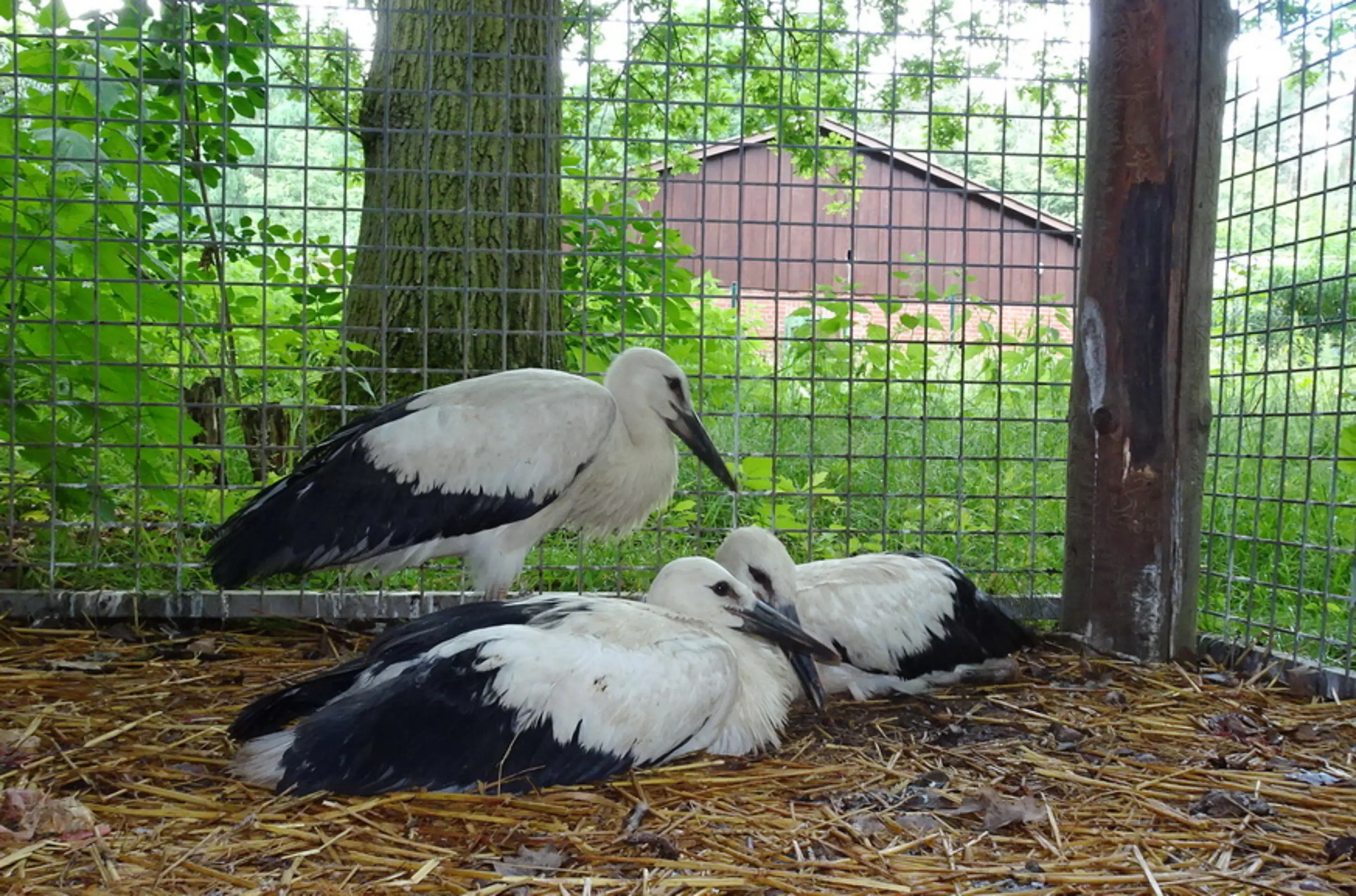 Da der weibliche Storch die zwei Jungstörche im Alter von zwei bis drei Wochen noch nicht alleine aufziehen konnte, wurden diese mit Hilfe eines rasch organisierten Teleskopladers aus dem Nest geborgen und zur weiteren Aufzucht in die Wildtierstation gebracht. Dort haben sie sich sehr gut entwickelt und werden im Herbst gemeinsam mit anderen Störchen ihre erste Reise in den Süden antreten.