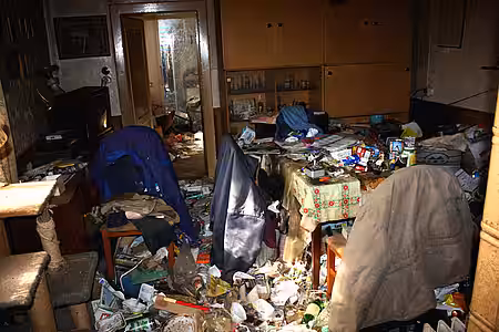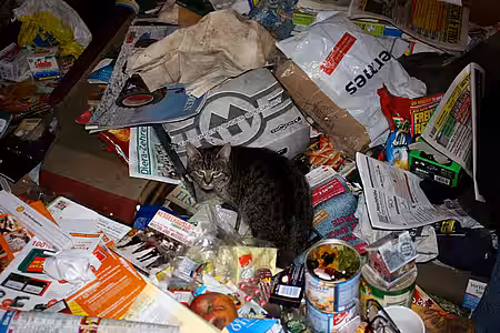 Mitte März 2014 erhielten wir den Hinweis auf eine verletzte Katze im sächsischen Diera. Unter der angegebenen Adresse fanden wir ein abseits gelegenes Einfamilienhaus vor. Im Garten hielten sich mehrere Katzen auf, die augenscheinlich an starkem Katzenschnupfen litten. Die Tür des Hauses stand offen und nachdem wir vom Eigentümer die Erlaubnis erhalten hatten, gingen wir rein. Drinnen herrschte ein unvorstellbares Chaos: Berge von Müll und Abfall, verschimmelte Essenreste, verdreckte Katzenklos.