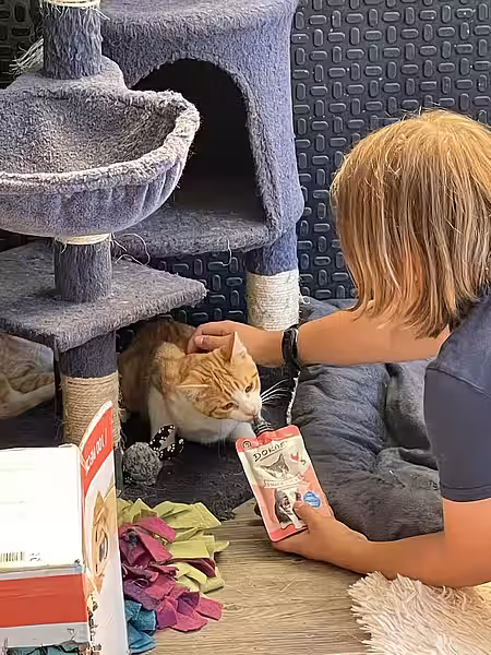 Vorher waren sie noch sehr ängstlich aber wie man nun sehen kann, bekommt man alles mit viel Liebe und Geduld hin. Abzugeben nur zu zweit oder als Zweitkatze und mit Freigang. Die Kleinen sind bereits zweifach geimpft, gechippt und entwurmt. Kastriert werden müssen sie noch. Bei Interesse meldet euch gerne unter +49 1736002852. Außerdem benötigen wir dringend wieder Kittenfutter, welches ihr uns beispielsweise über Zabello spenden könnt.