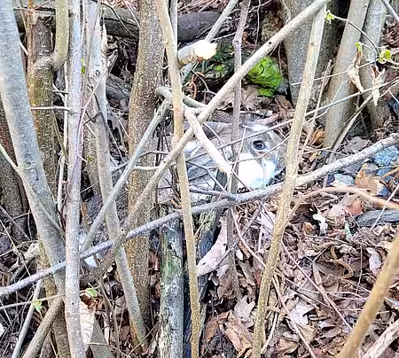 Michaela übergab ihrer Mutter schnell die Leinen und näherte sich langsam dem Tier, als plötzlich ein zweites Kaninchen auftauchte. Die armen Tiere wurden offenbar einfach im dreckigen Wassergraben "entsorgt"! Anders mag man es kaum beschreiben, denn diese Kaninchen sind domestizierte Haustiere, die in der freien Natur keine Überlebenschancen haben und in naher Zukunft sicher die Mahlzeit eines Raubtieres geworden wären.