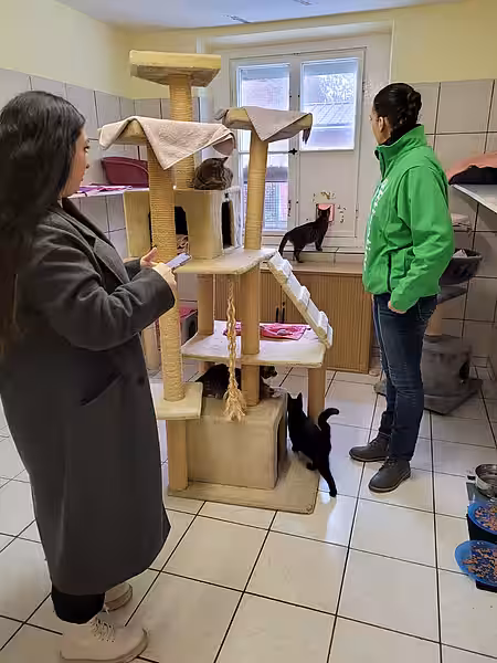 Nun wollte sie die Spende gerne persönlich überreichen und sich dabei gleich ein eigenes Bild von unserer Arbeit vor Ort machen. Gerne nahmen wir die junge Frau in Empfang und führten sie durch unser Tierheim. Beginnend im Kleintierhaus ging unser Rundgang weiter zu den Hunden und endete schließlich bei unseren Katzen.