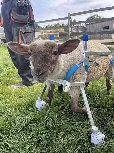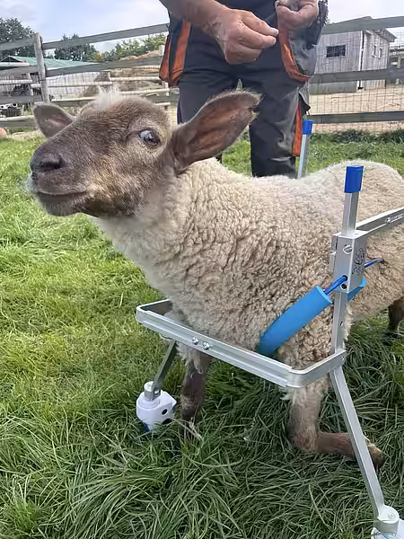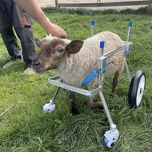 Unser Lämmchen Fritz in seinem neuen (gespendeten) Rollstuhl. Wir bedanken uns recht herzlich! Der Rollstuhl ist genau an Fritzis Maße angepasst und sitzt wie angegossen.