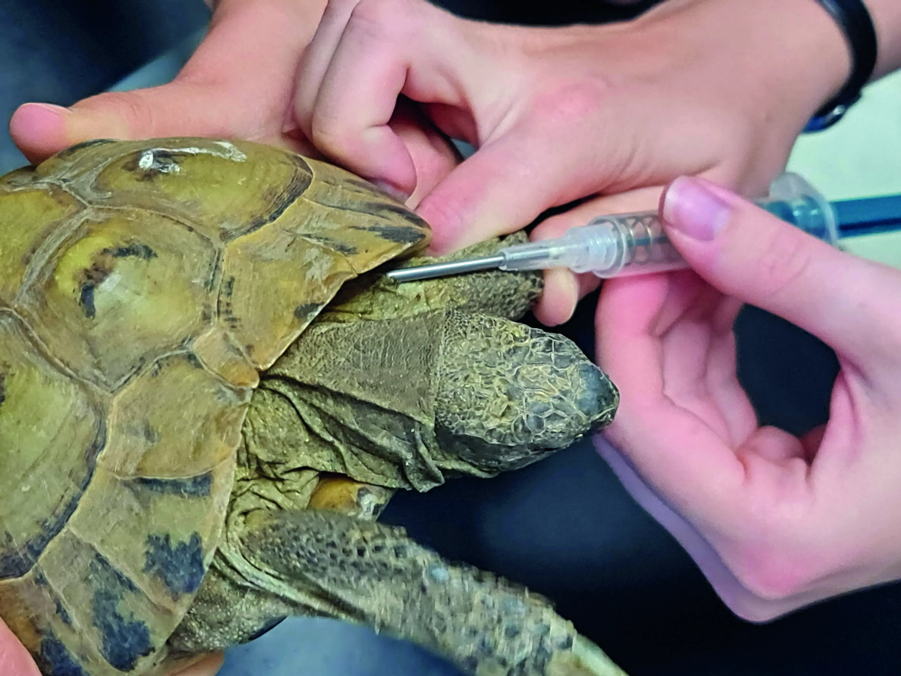 Die letzte Behandlung des Tages ist das Chippen einiger Schildkröten. Zwei Landschildkröten, vermittelt in Privathand, erhalten einen Identifikationschip unter die Haut – vergleichbar mit Hunden und Katzen. Mit diesem Chip ist jedes Tier eindeutig identifizierbar. Die Sumpfschildkröten hingegen gehören zu einem Artenschutzprojekt der Wildtierstation. Die Europäische Sumpfschildkröte ist in Deutschland nahezu ausgestorben und wird in Sachsenhagen herangezogen, um später am Steinhuder Meer ausgewildert zu werden.