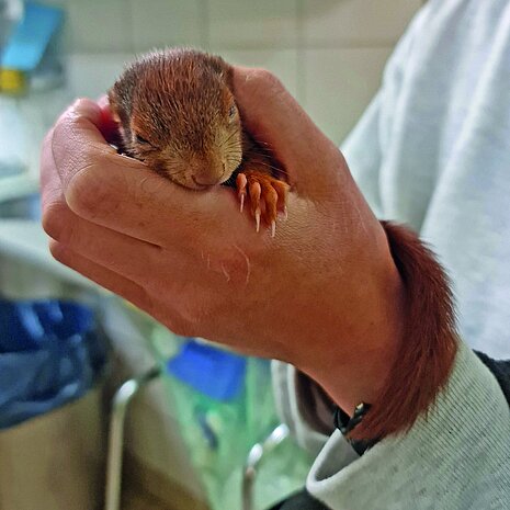 Im Aufnahmeraum entdecke ich einen Brutkasten, in dem zwei junge Eichhörnchen warmgehalten werden. Es ist so schön, mit anzusehen, wie die beiden miteinander spielen und raufen. Sie wurden unabhängig voneinander abgegeben, spielen aber wie Geschwister miteinander. Nach ihrer Auswilderung werden beide ihre eigenen Wege gehen, da Eichhörnchen Einzelgänger sind.
