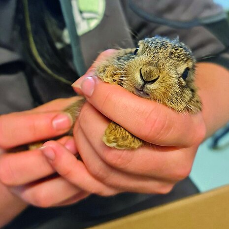In der Sommerzeit ist Hochsaison in der Station. Gerade eben erst wurde der Aufnahmestopp wieder aufgehoben. Und es klingelt erneut am Eingangstor. Zeitgleich werden ein Feldhasenjunges und eine noch sehr kleine Ratte vorgestellt. Die Ratte hat es leider aufgrund ihres schlechten Allgemeinzustands nicht geschafft, doch der Feldhase ist sehr lebhaft und scheint gute Chancen zu haben, einmal groß und stark zu werden. Er war von einer Katze gefasst worden. Da den Findern der Setzort der Häsin nicht bekannt war und durch Katzenbisse gefährliche Infektionen entstehen können, brachten sie ihn in die Wildtierstation.