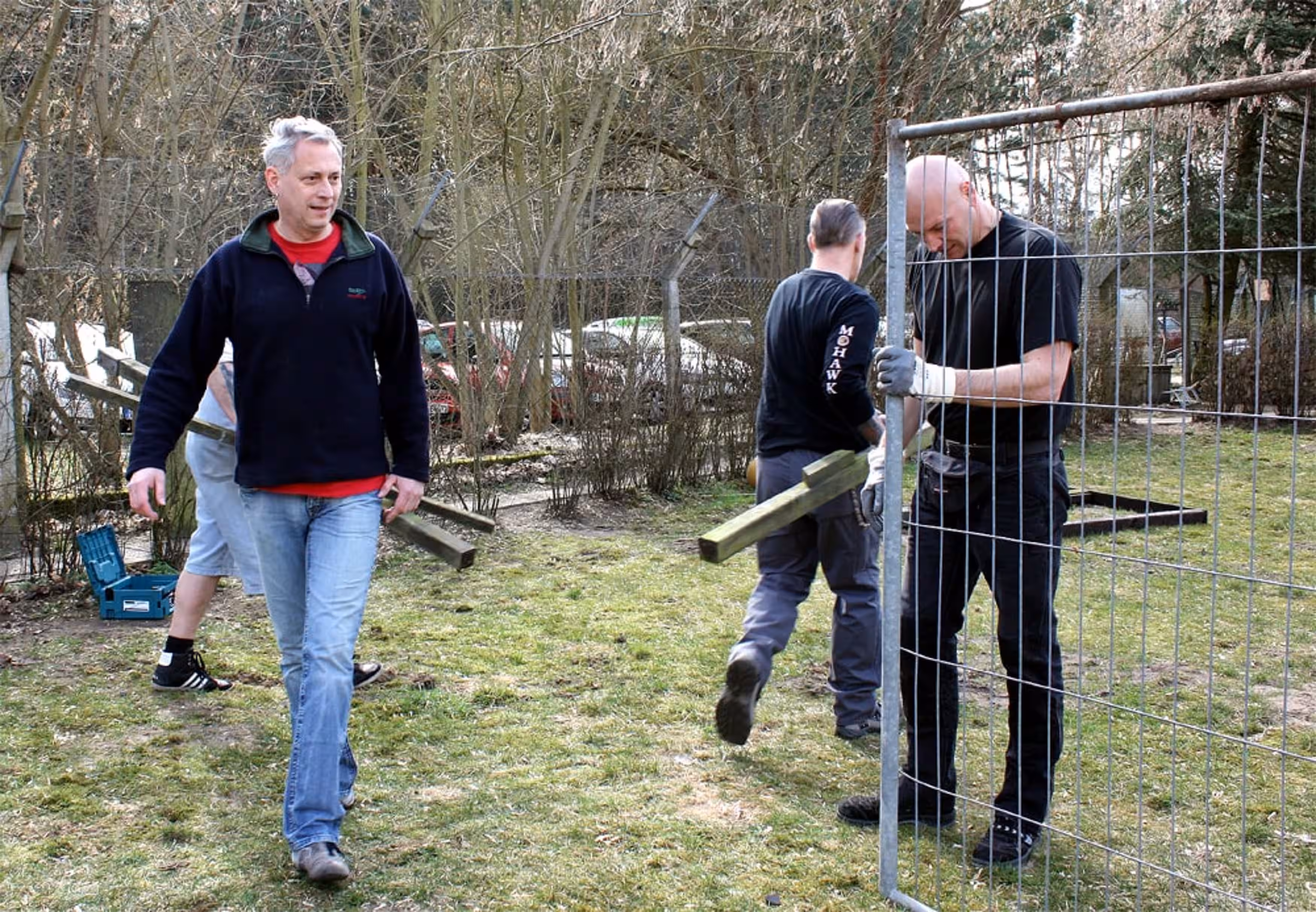 An die 15 Leute von Mopars & Coffee haben sich am 25. März im Zossener Tierheim eingefunden, um den Grundstein für das neue Bauprojekt zu legen. „Das wir so gut und schnell vorankommen und dabei so viel erreichen, hätte ich gar nicht erwartet“, freut sich Hausmeister Thomas Kaminski. Der gelernte Tischler behielt auch heute den Überblick über die Bauarbeiten und koordinierte die Helfer, sodass die geplanten Arbeiten schnell getan waren.