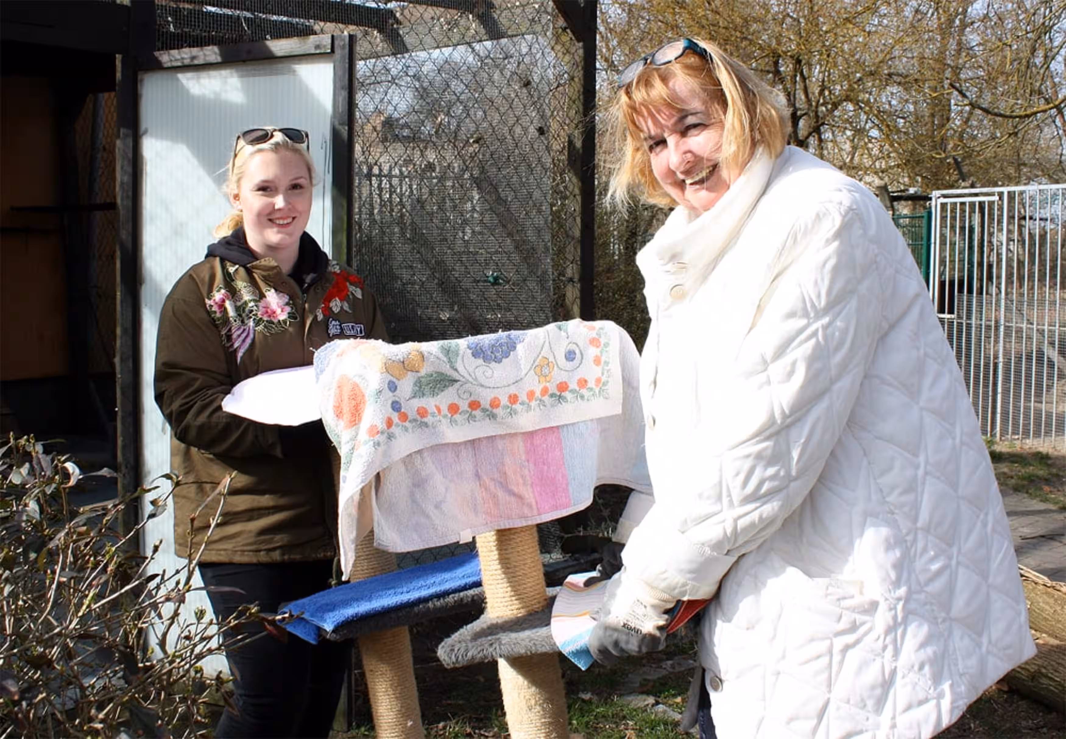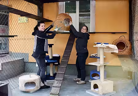 Auch in den Kaninchenausläufen und in den Katzengehegen wurde Hand angelegt. Für die Nager gab es einen neuen Untergrund aus Sand und die Außenbereiche der Katzen wurden komplett ausgeräumt, gereinigt und mit neuen Spiel- und Klettermöglichkeiten eingerichtet. „Wir möchten die Außengehege ein bisschen naturnaher gestalten“, so Vorstandsmitglied Elna Windmann.