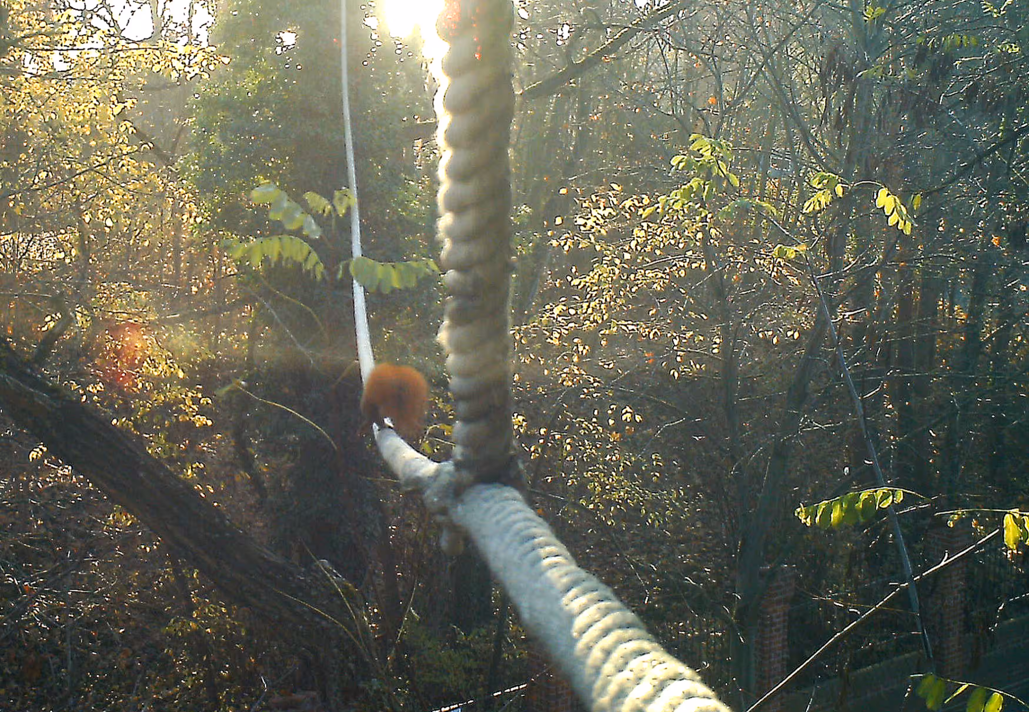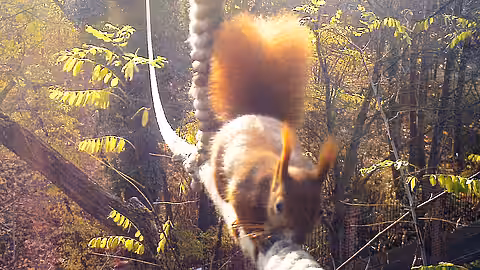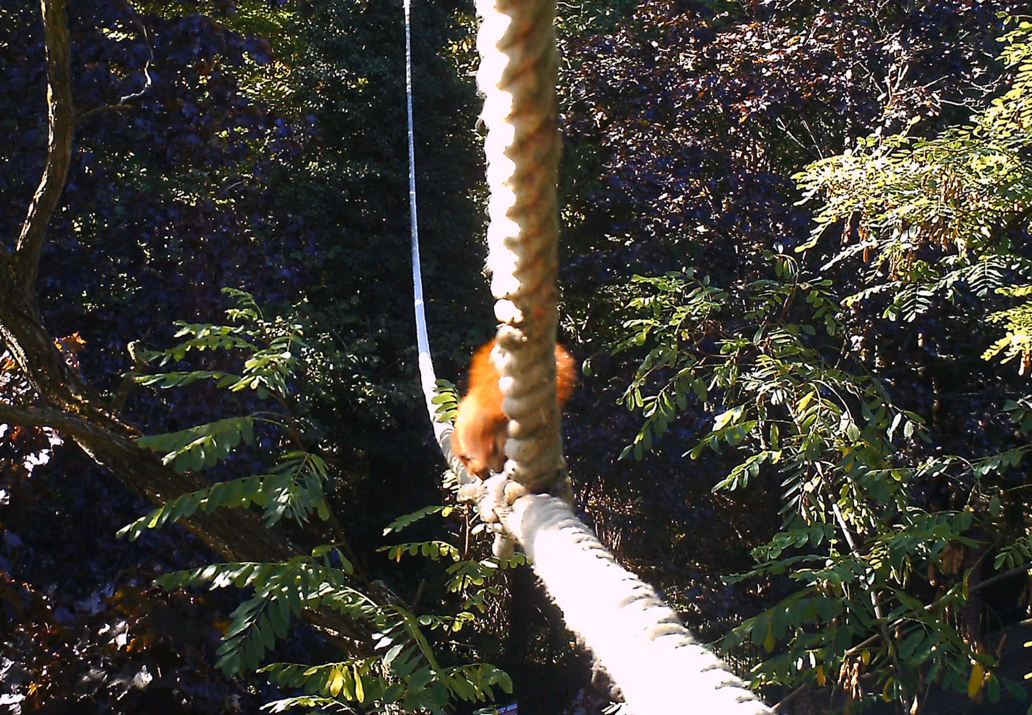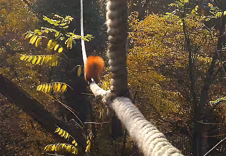 Nun haben wir diese für den Winter abgebaut und auf der Speicherkarte neben zahlreichen Fotos von Vögeln, die das Seil anscheinend gerne als Sitzgelegenheit benutzen, auch mehrere Bilder von Eichhörnchen gefunden. Vor allem die Abbildungen von Hörnchen in vollem Galopp in der Mitte des Taus zeigen deutlich, dass die Tiere nicht nur an den Seilenden herumturnen, sondern tatsächlich von Seite zu Seite wechseln.