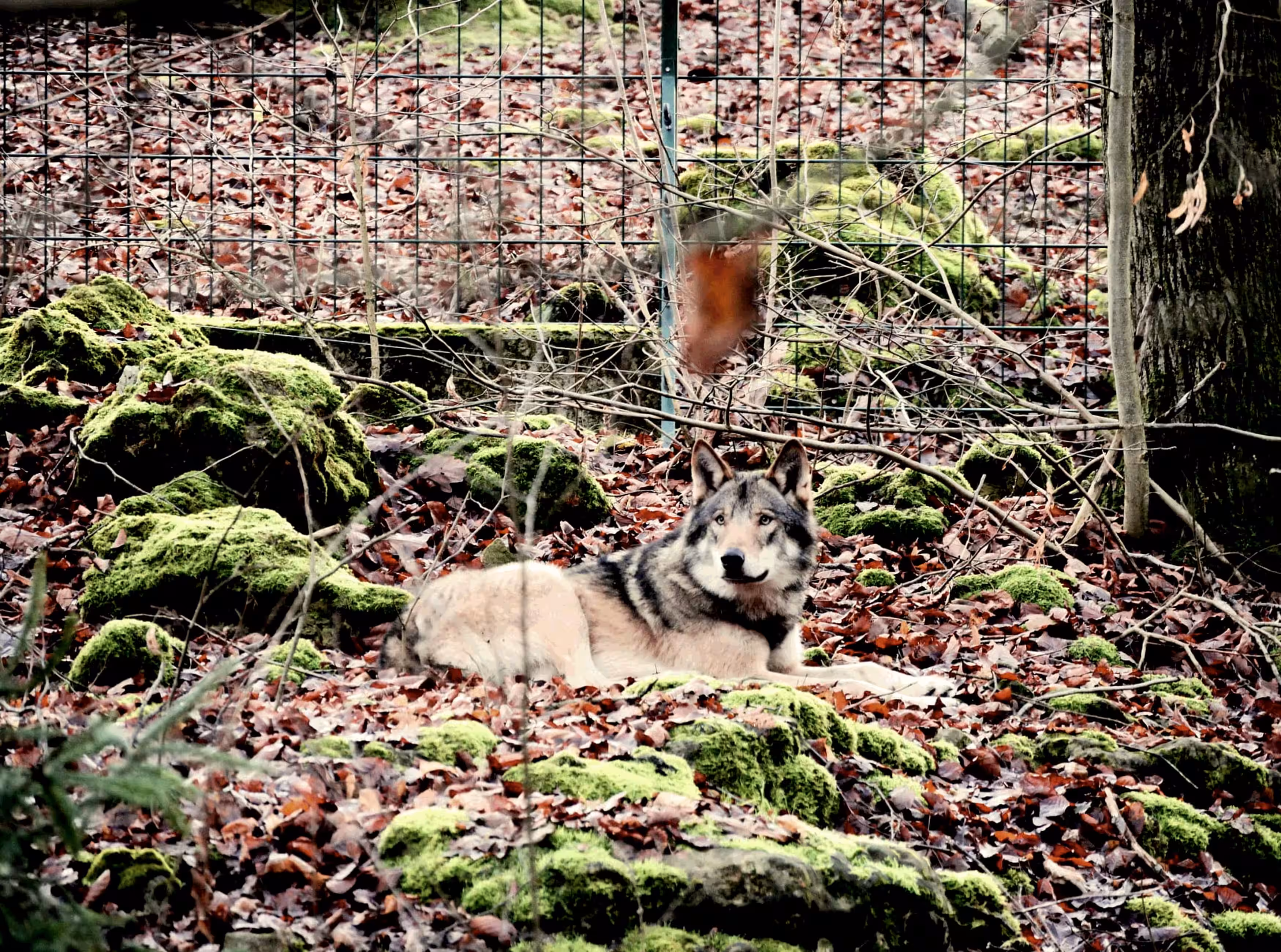 Bei unserer Ankunft im Tierheim Aachen zeigte sich, dass das optisch von einem Wolf nicht zu unterscheidende Tier den Schieber zerstört hatte und im Innengehege festsaß, welches durch die Tierheim-Mitarbeiter nicht mehr betreten werden konnte. Mit einem Blasrohr habe ich das Tier betäubt und vor dem Transport in die Wildtierstation vor Ort eine Allgemeinuntersuchung durchgeführt. Dabei wurde ein Transponder gefunden, der eindeutig belegt, dass dieses Tier nicht aus der freien Wildbahn, sondern aus menschlicher Obhut stammt. Ansonsten befand sich der zwei- bis dreijährige Rüde in einem guten Allgemeinzustand. Im Gehege der Wildtierstation hatte das Tier erst einmal Ruhe, um die genetische Untersuchung abzuwarten und dann das weitere Vorgehen mit den Behörden abzuklären.