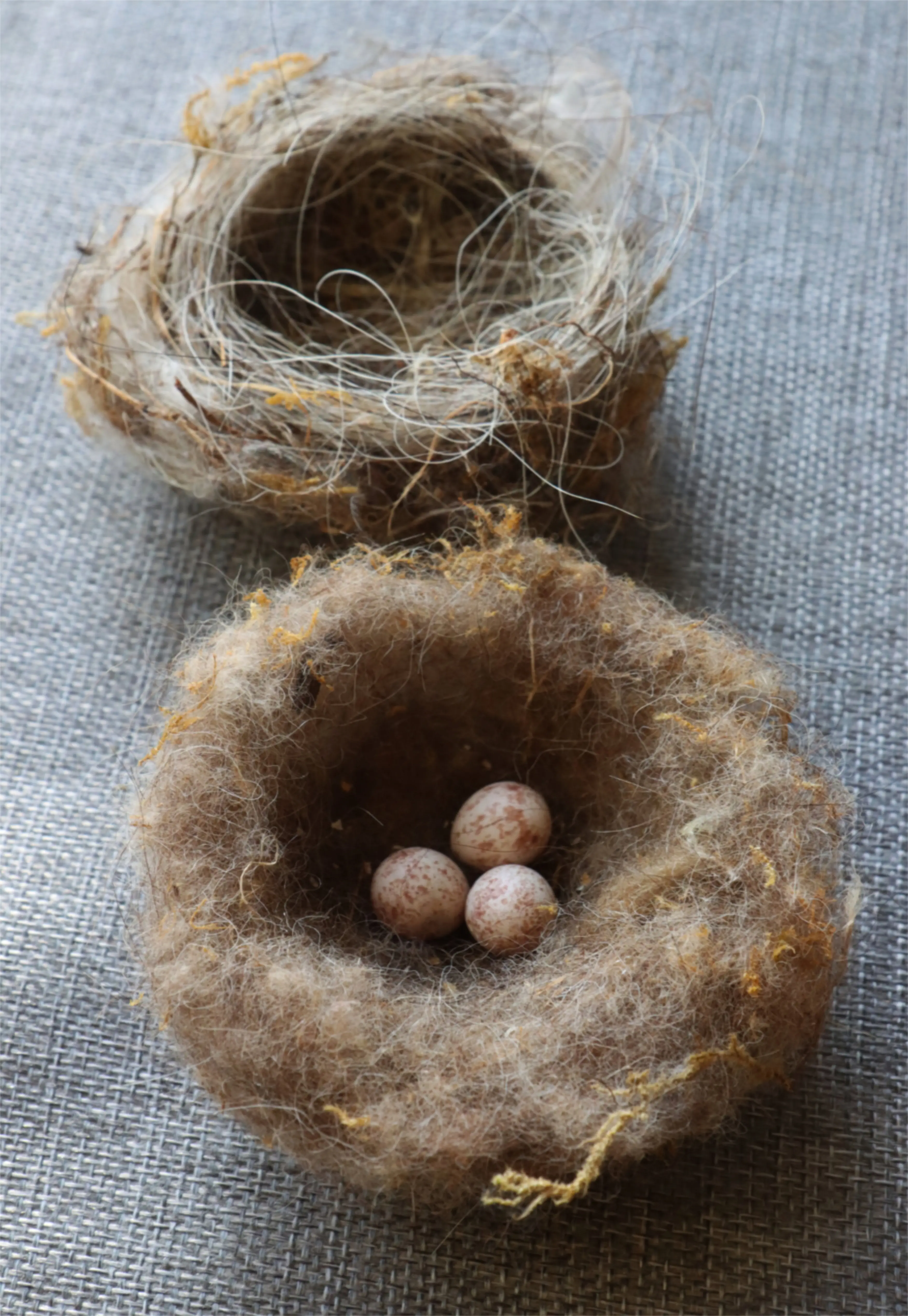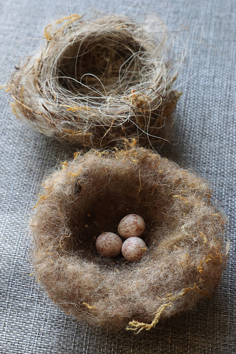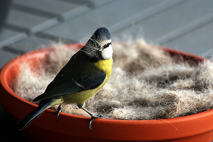 Die Haare von Pferden, Kaninchen, Schafen, Hunden und Katzen scheinen auf den ersten Blick hervorragendes Nistmaterial zu sein. Sie dürfen jedoch nur verwendet werden, wenn das Spendertier keine Medikamente erhalten hat und nicht gegen äußere Parasiten wie Flöhe, Milben oder Zecken behandelt wurde. In ausgekämmten Haaren verbleibende Wirkstoffrückstände können bei Nestlingen schwere Vergiftungen oder Entwicklungsstörungen verursachen. Um Verheddern oder Strangulieren zu vermeiden, müssen lange Tierhaare zudem auf maximal 10 cm gekürzt werden.