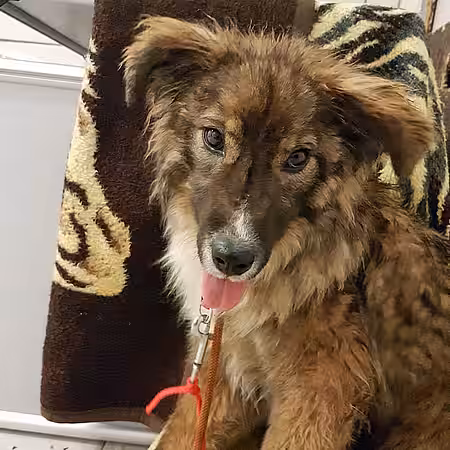 Nun ist die junge Hündin bei uns im Tierheim und scheint sich ihrem Schicksal schlichtweg ergeben zu haben. Sie lässt sich anfassen, ließ es anfangs eher „über sich ergehen“, kommt uns mittlerweile aber auch schon freudig entgegen, wenn wir das Zimmer betreten. Sie weiß nicht, wie man aus einem Futternapf frisst, und muss zahlreiche neue Dinge lernen.