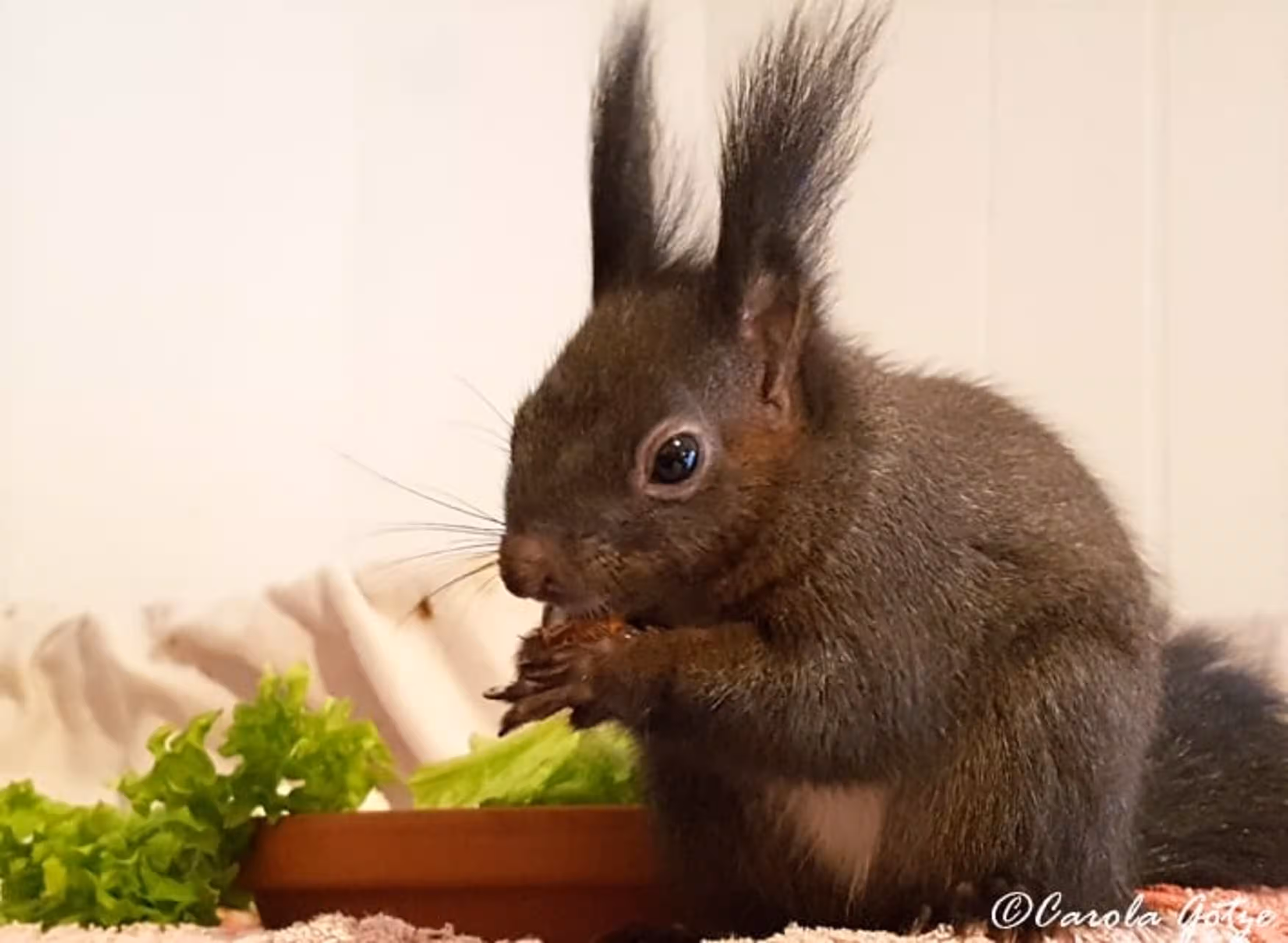 Daher ist es uns ein Herzensanliegen Folgendes klarzustellen – und bitte geben Sie diese Information an alle weiter: Unser einheimisches Eichhörnchen kann verschiedene Färbungen aufweisen. Am bekanntesten ist wohl das rotbraun (kastanienrotbraun) gefärbte. Es hat immer einen weißen Bauch, der sich nie verfärbt. Im Winter wechselt die Fellfarbe häufig, nicht immer, ins Graue. Es gibt aber auch Eichhörnchen, die dunkelbraun, fast schwarz sind oder braunorange, wie aus den hier beigefügten Fotos ersichtlich. Manchmal sind nur Teile des Felles ins Graue verfärbt, so dass es fast wie „Patchwork“ aussieht. Aber egal, welche Farbschattierung es haben mag, es handelt sich noch immer um unser einheimisches Eichhörnchen! Manches Mal gibt es auch rote und schwarze Hörnchenjungen in einem Wurf.