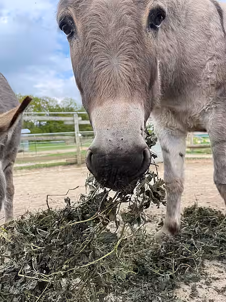 Wir freuen uns immer, wenn unsere lieben Tierpaten ihre Patenkinder besuchen kommen. Heute brachte die Patin unserer Eselin Mariechen für all unsere Langohren getrocknete Brennnesseln mit. Unsere 7 Zuckerschnuten stürzten sich sogleich darauf und sagen Dankeschön!