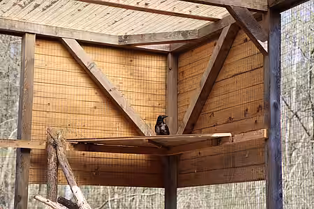 Im Falle der Rabenkrähe sind die ganzen Schwungfedern abgeflammt, sodass der Vogel nicht mehr fliegen kann. Das Tier wurde in unserer Station medizinisch behandelt und muss nun komplett durchmausern, bevor es später gesund in die Freiheit entlassen werden kann.