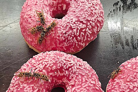 Manchem platzt angesichts des distanzlosen Wespengewusels schon mal der Kragen. Warum die Biester nicht einfach totschlagen? Weil es erstens verboten ist – sämtliche Wespen sind nach dem Bundesnaturschutzgesetz geschützt – und zweitens das Gegenteil bewirkt. Denn eine sterbende Wespe sendet mithilfe von Pheromonen einen chemischen Hilferuf aus, der nur noch mehr Artgenossen anzieht.