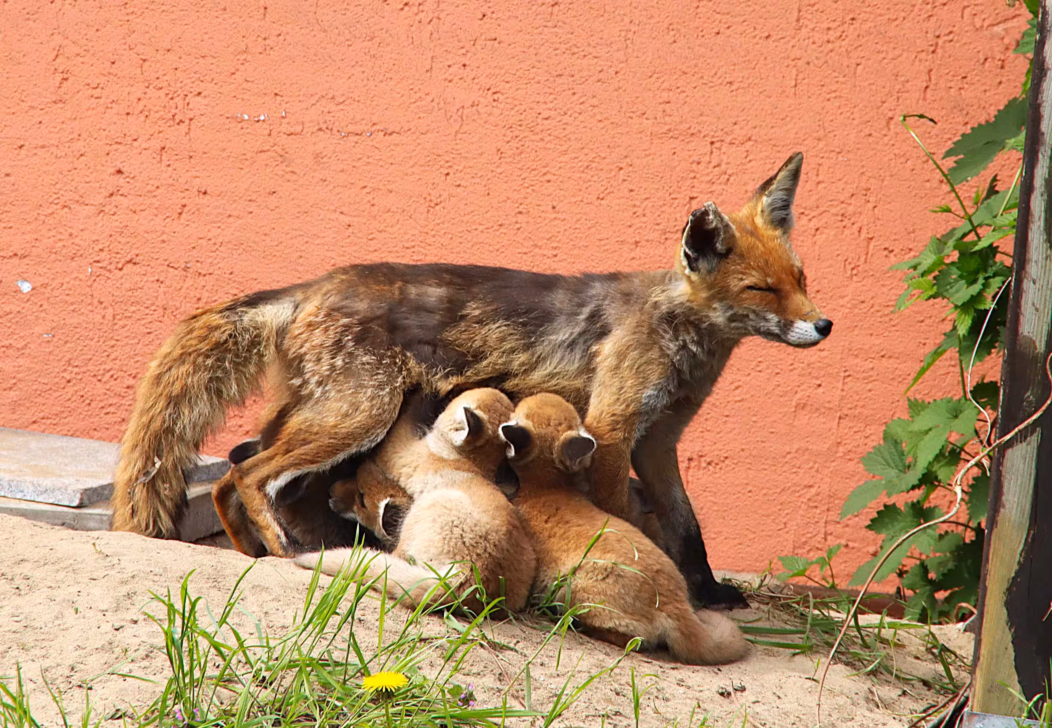 Unsere Rotfüchse (Vulpes vulpes) gehören neben Schakalen, Kojoten und Wölfen zur Familie der Hunde. Eine Fuchsfähe bringt einmal jährlich zwischen März und April durchschnittlich 3-5 Junge zur Welt. Beide Elternteile beteiligen sich an der Aufzucht und sollte das Muttertier zu Tode kommen, übernimmt der Fuchsrüde sogar die Rolle des alleinerziehenden Papas.