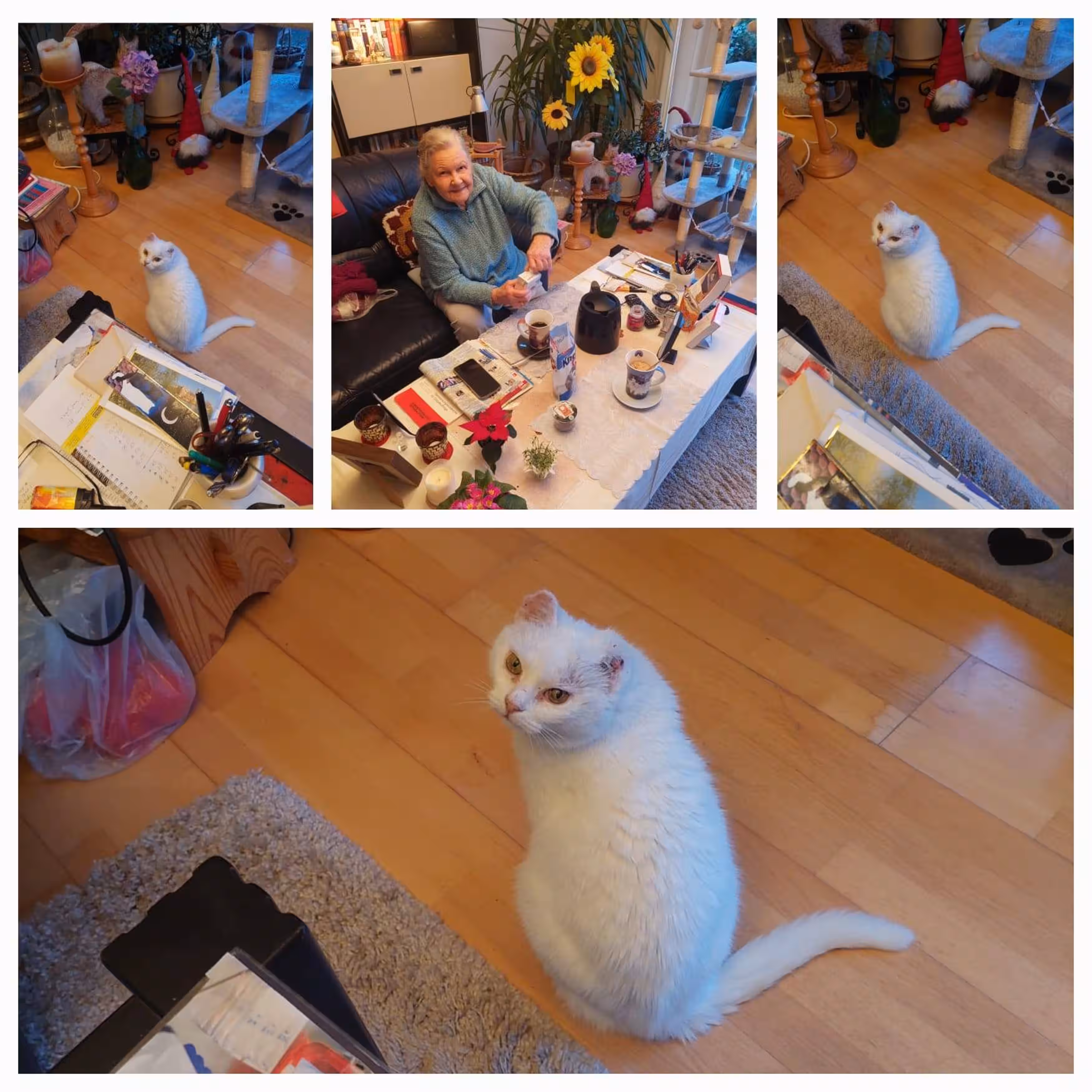 Was viele aber noch nicht wissen: Frau Doll hat einen herben Schicksalsschlag im letzten Jahr erlitten, über den wir aus Respekt nicht näher eingehen möchten. Was auch nicht viele wissen: Etwa zur gleichen Zeit bekamen wir eine Omi-Katze namens Mietzi in unsere Obhut. Mietzi hatte ihr Herrchen verloren, über 15 Jahre war sie an seiner Seite. Leider war sie nun eine "Waise" und wurde uns von Freunden des Verstorbenen ins Tierheim gebracht. Mietzi hatte Krebs an beiden Öhrchen, sodass die Ohrmuscheln amputiert werden mussten. So eine tapfere Katze!!! Und eine 1A-Patientin. Sie hat sich gut erholt.