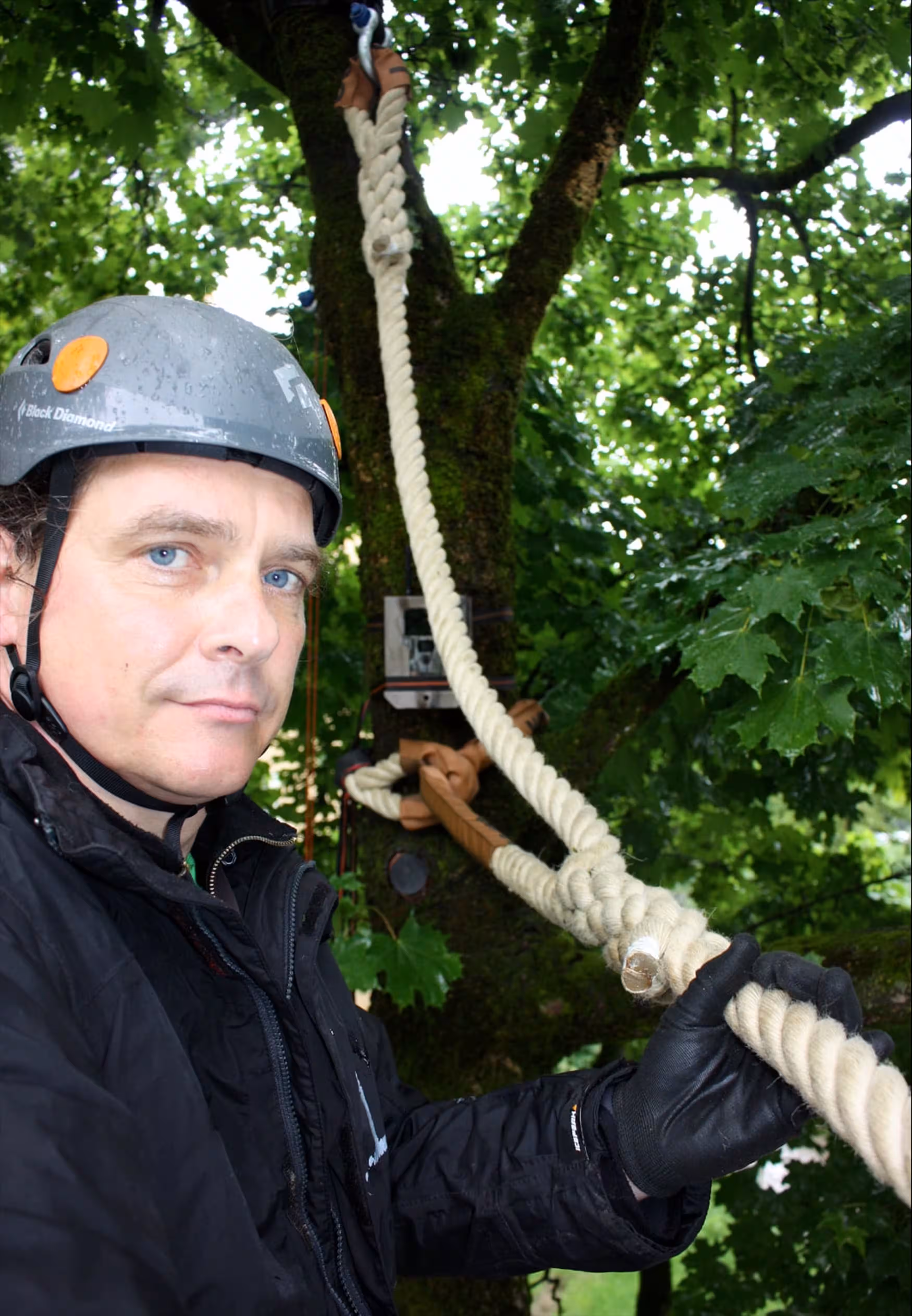 Natürlich geben wir auch gerne unsere Erfahrungen sowie alle praktischen Informationen rund um die Seile weiter. Regelmäßig erreichen uns Anrufe von Tier- und Naturschutzgruppen, die in ihrer Stadt ebenfalls eine Querungshilfe anbringen wollen. Durch unsere Beratung helfen wir effektiv weiter, selbst wenn manchmal die Enttäuschung groß ist. Viele Menschen erwarten nicht, dass so ein Projekt arbeitsintensiv und mit gewissen Kosten verbunden ist. Wer denkt, einfach ein Seil aus dem Baumarkt um zwei Straßenbäume wickeln zu können, ist leider auf dem Holzweg. Unsere Taue werden von einem Seilermeister gefertigt und an beiden Enden mit einem Scheuerschutz versehen, damit die Bäume keinen Schaden nehmen. Seilexperte Alexander Geist bringt sie dann fachgerecht an, wofür eine Hebebühne und teilweise auch die Absperrung der Straße erforderlich ist. Bis das Seil hängt kann man mit Kosten von ca. 3.000 Euro rechnen. Hinzu kommen die jährlichen Kontrollen, die zwischen 500 – 800 Euro zu Buche schlagen.