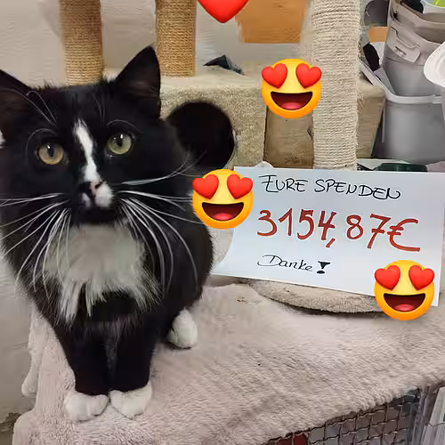 3154, 87 € Spenden für Mr Mauz´ Behandlung kamen zusammen. So können wir die Therapie dank allen Spendern mit Leichtigkeit stämmen. Das lebensrettende Medikament habt ihr ganz allein sogar komplett finanziert! Dafür möchten wir euch von ganzem Herzen danken. Das gesamte Team und auch der Vorstand sowie alle Ehrenamtler waren und sind mehr als gerührt von der großartigen Hilfsbereitschaft.