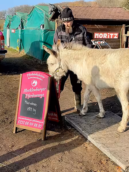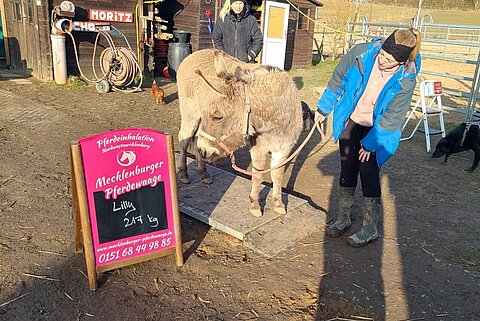 All unsere Pferde, Esel und auch Ziege Oskar haben super mitgemacht. Pony Dancer hatte auf der Waage sogar noch Zeit, mit Dori zu knutschen, während Eselin Lillyfee gemeinsam mit Resi ganz genau ihr Gewicht prüfte.