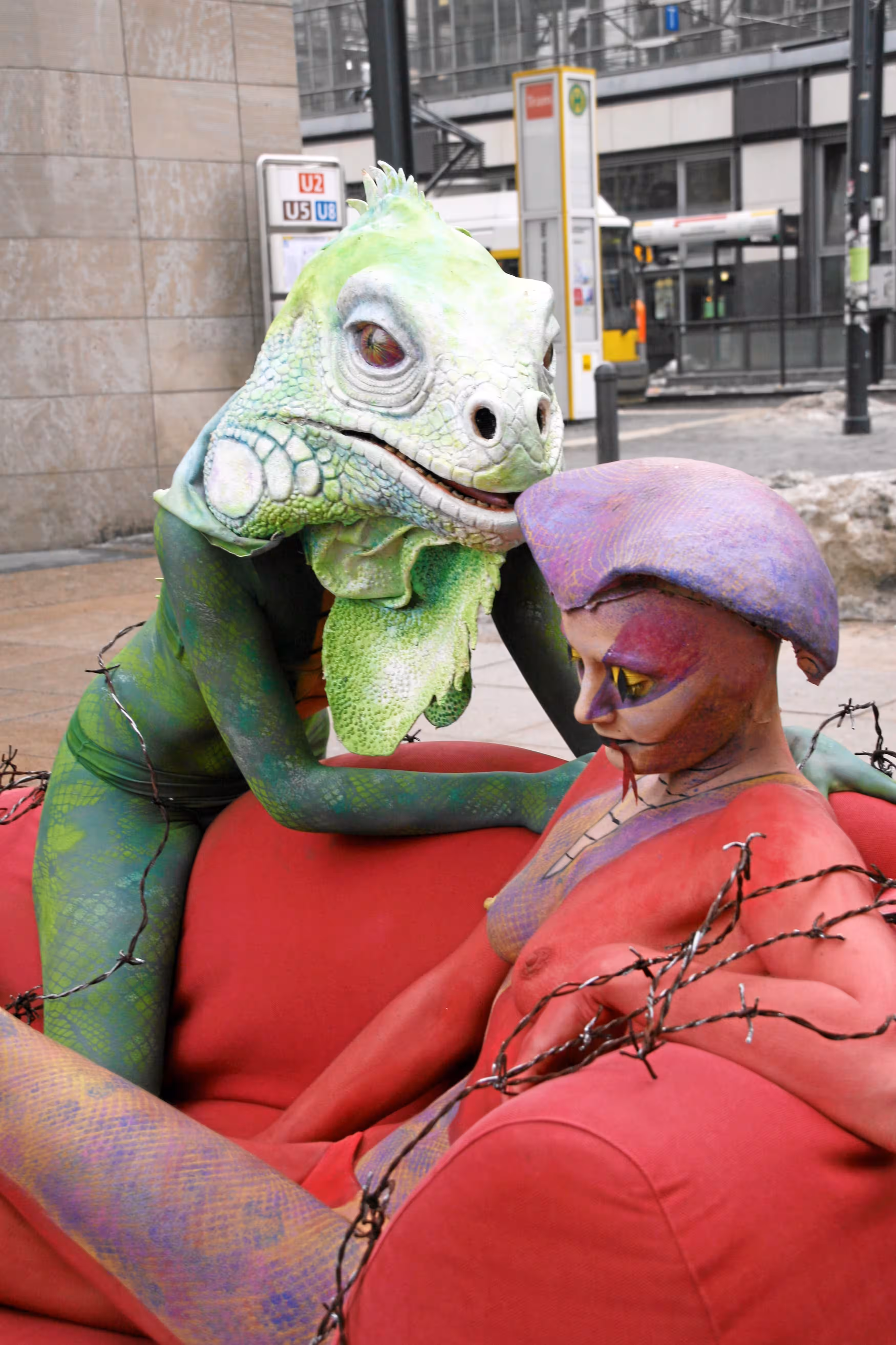 Am 19. Februar 2010 haben wir gemeinsam mit unserem Kooperationspartner animal public e.V. die große Aufklärungskampagne „Wildtiere gehören nicht ins Wohnzimmer- Artgerecht ist nur die Freiheit" auf dem Berliner Alexanderplatz gestartet. Unsere Open-Air-Aktion mit Bodypainting, Infostand und Unterschriftensammeln war ein voller Erfolg. Bei herrlichem Sonnenschein und nicht mehr ganz so frostigen 3 Grad plus haben die drei als Reptilien angemalten Frauen dennoch ziemlich gefröstelt. Das Sofa mit den täuschend echt angemalten Models und Stacheldraht darum herum war ein absoluter Hingucker. Die Passanten haben verstanden, worum es geht: um das Tierleid in unseren Wohnzimmern.