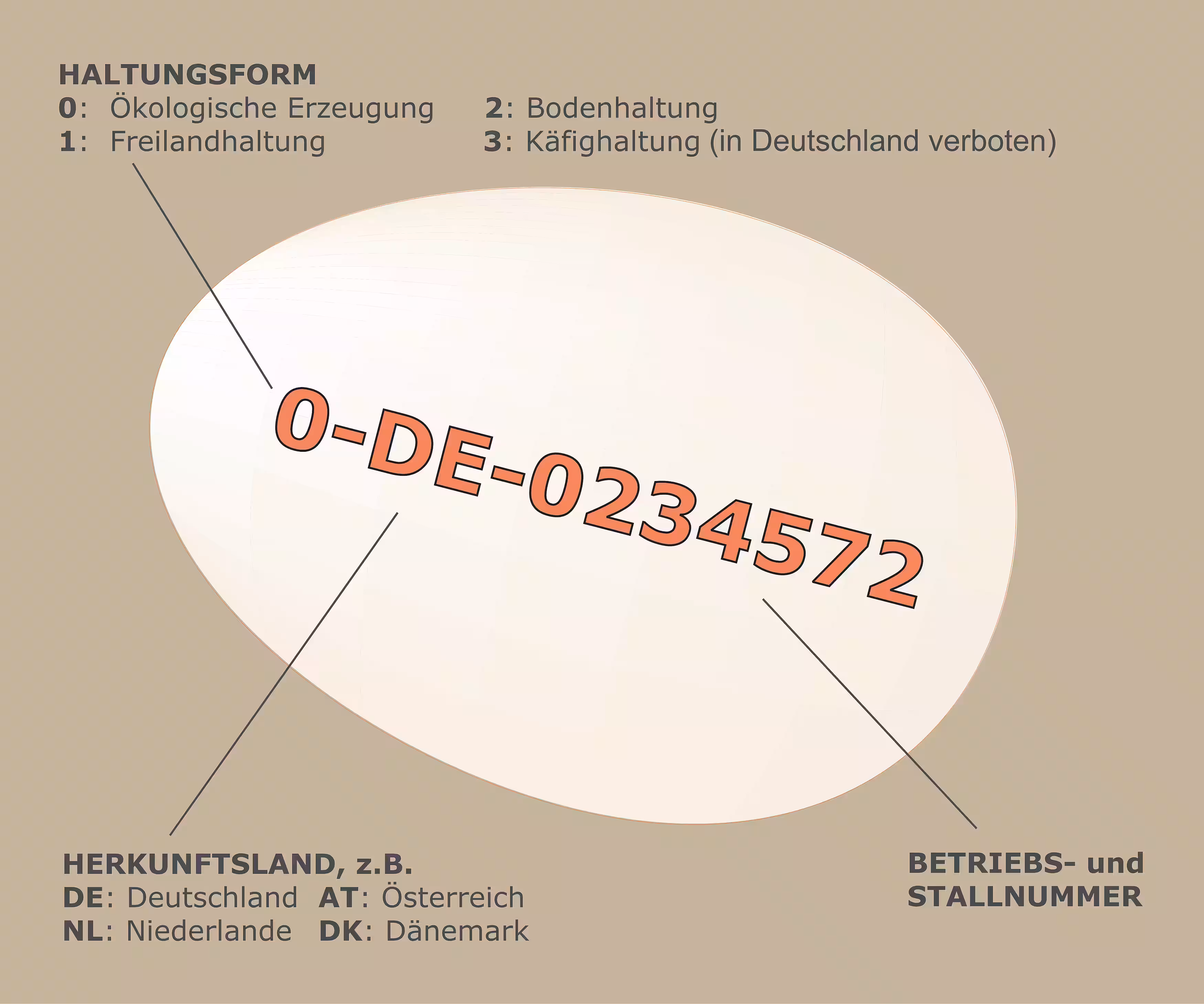 Alle frischen Hühnereier mit Schale, die hierzulande an Verbraucher verkauft werden, müssen mit einem Stempel gekennzeichnet sein, der Auskunft über das Herkunftsland, den Erzeugerbetrieb und die Haltungsform der Legehennen gibt. Egal, ob sie aus einem Drittland oder aus der EU nach Deutschland importiert wurden.