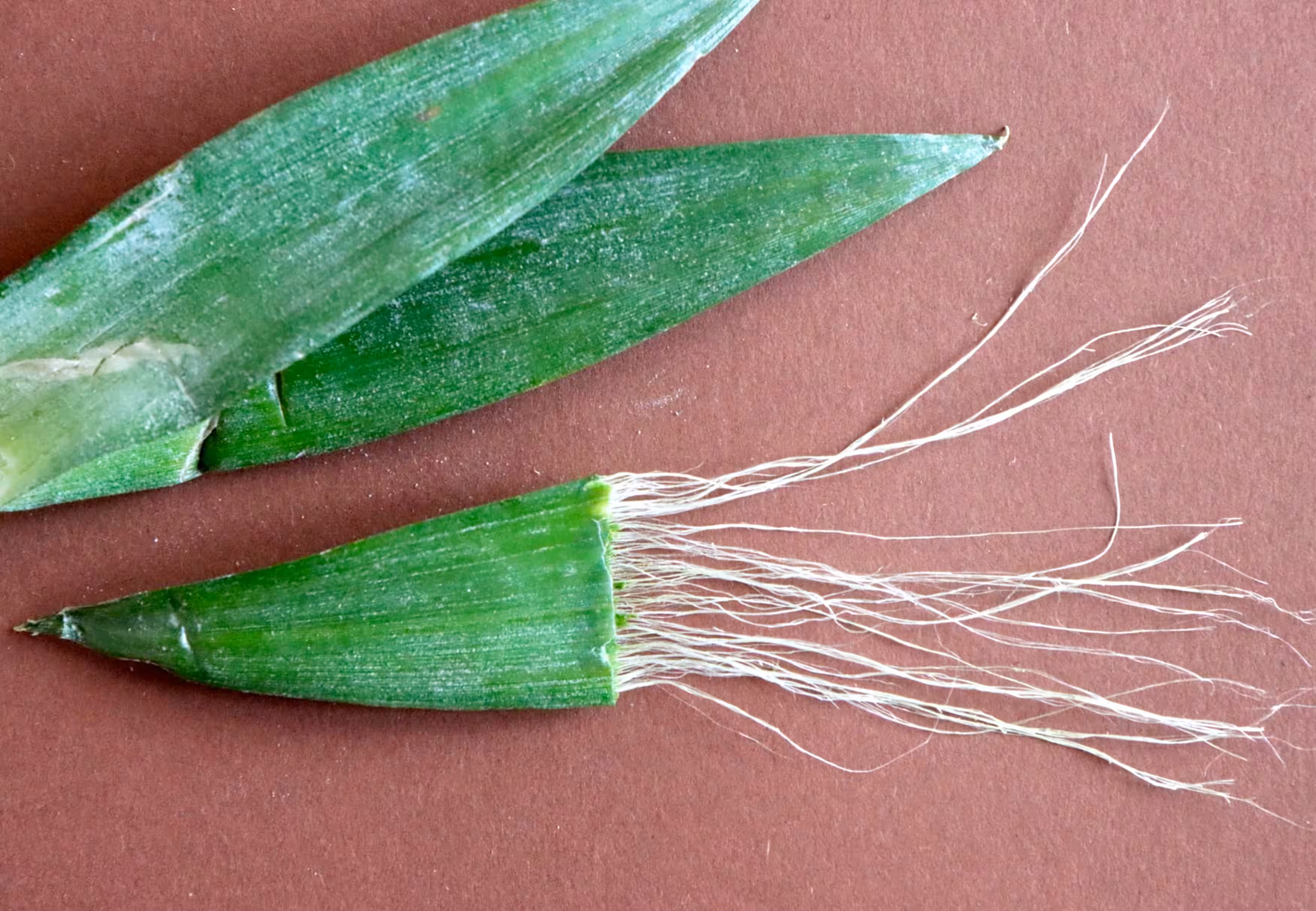 Piñatex besteht in erster Linie aus den Fasern von Ananasblättern, die bei der Ernte der Früchte anfallen. Es handelt sich also um eine sinnvolle Verwertung von landwirtschaftlichem Pflanzenabfall. Nichts wird zusätzlich angebaut, so dass Ressourcen wie Wasser, Düngeund Pflanzenschutzmittel eingespart werden. Die Ananasfasern für Piñatex stammen von Plantagen auf den Philippinen, wo sie direkt vor Ort aus den Blättern geschält, gereinigt und getrocknet werden. Bis dahin ist alles nachhaltig und natürlich. Dann werden die Fasern allerdings mit Chemikalien gegerbt und mit Epoxidharz, das aus Erdöl hergestellt wird, versiegelt. Damit ist Piñatex nicht mehr biologisch abbaubar. Dieser Lederersatz ist also im Moment noch nicht optimal, es wird aber bereits an einer Alternative ohne Erdölharz gearbeitet.